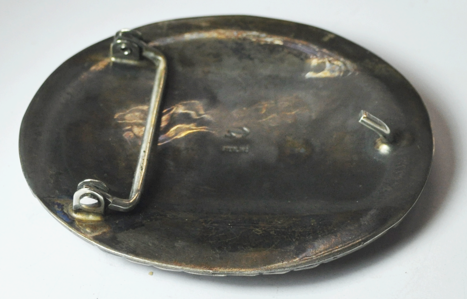 Sterling Turquoise Coral Cluster Oval Belt Buckle 3-3/8" x 2-3/4" Signed Arrow