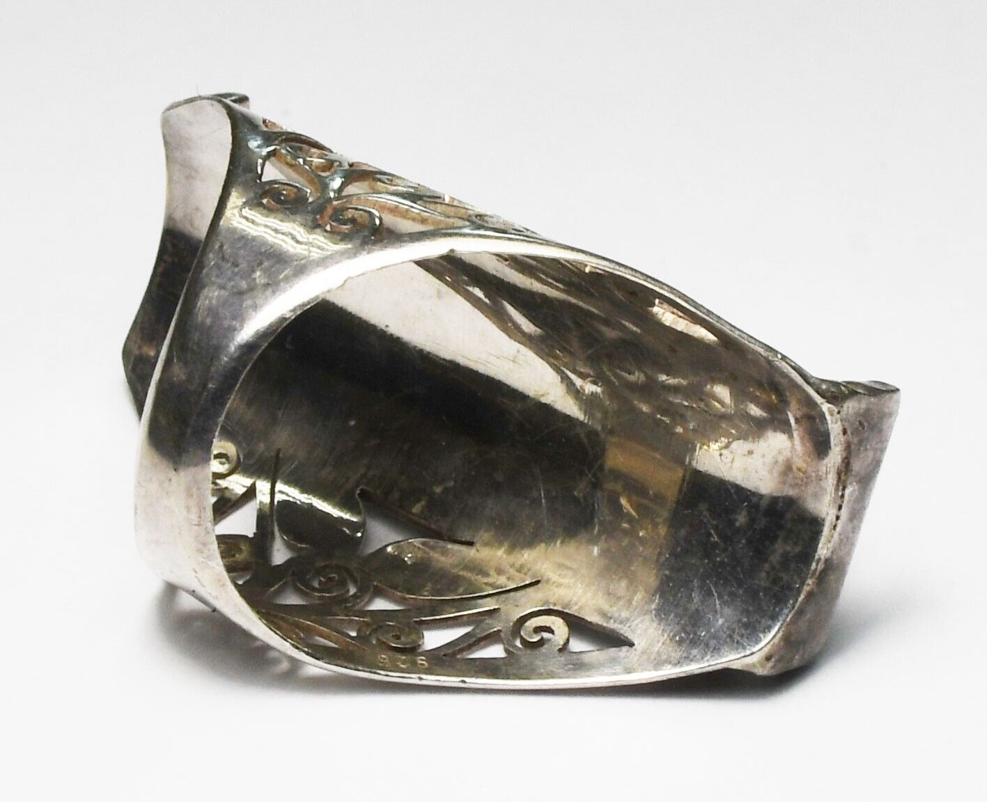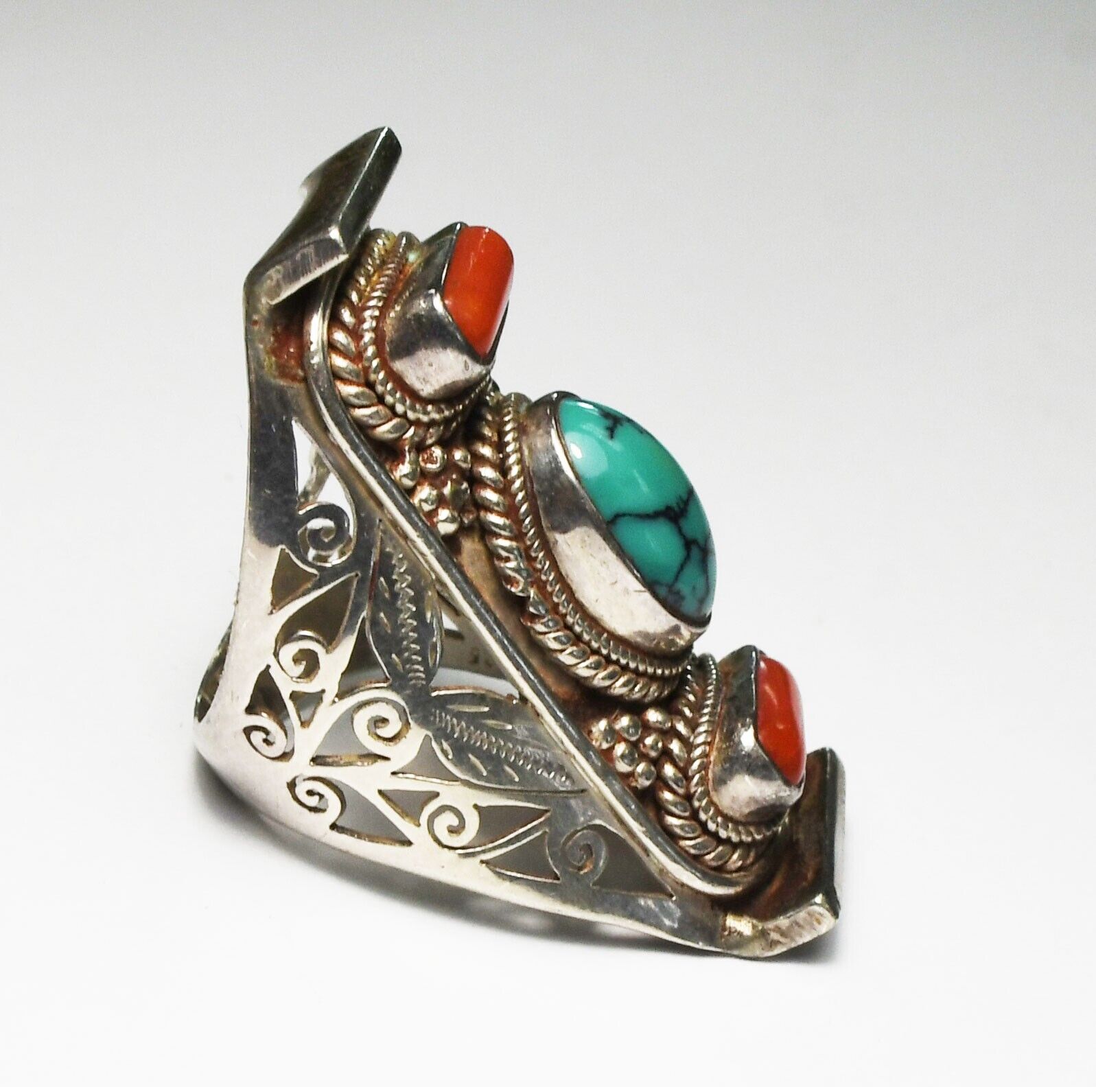 Sterling Turquoise Coral Elongated Filigree Ring 39mm Size 8