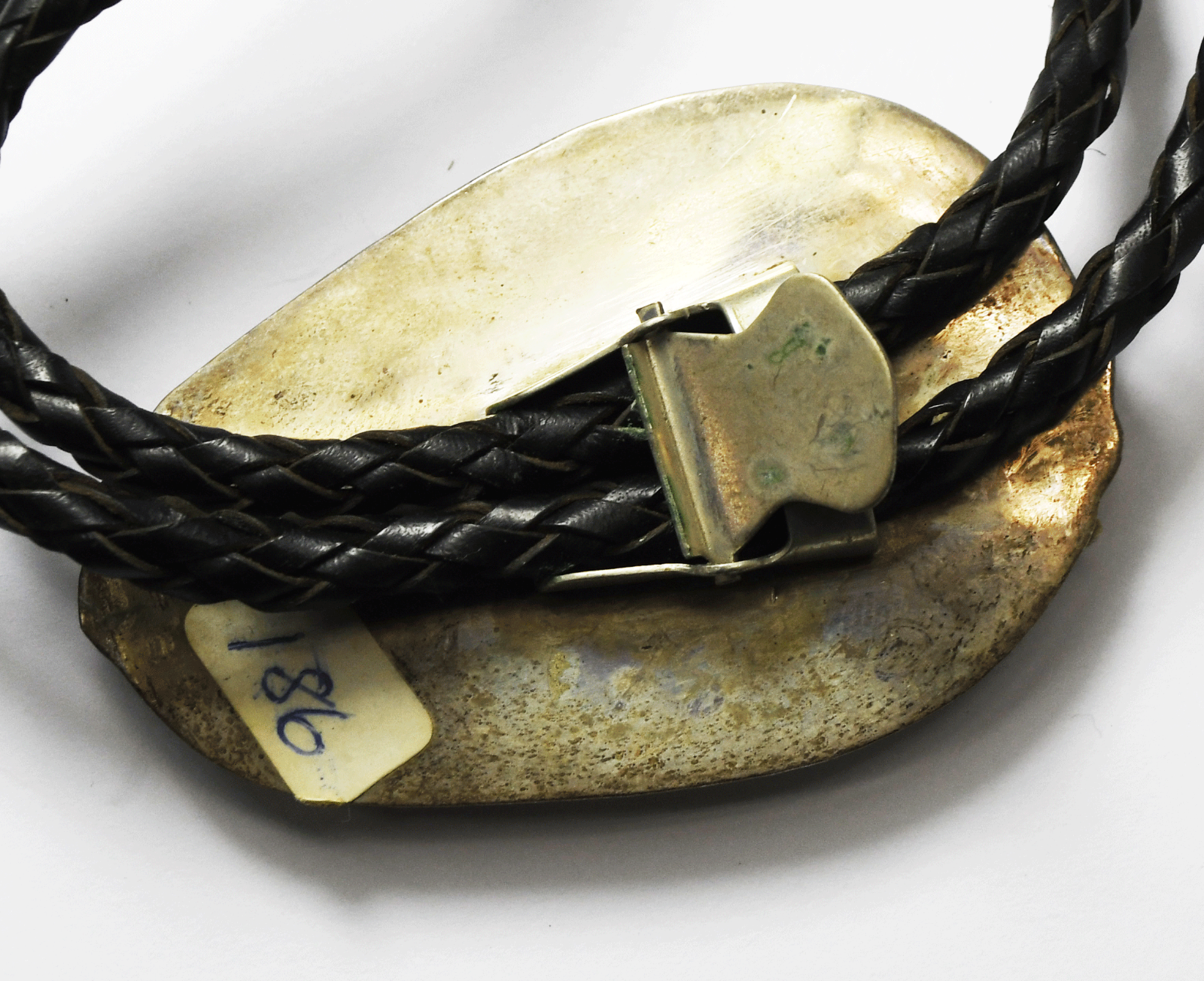 Sterling Turquoise Coral Ovoid 67mm Bolo Tie 19" Double Black Leather Cord