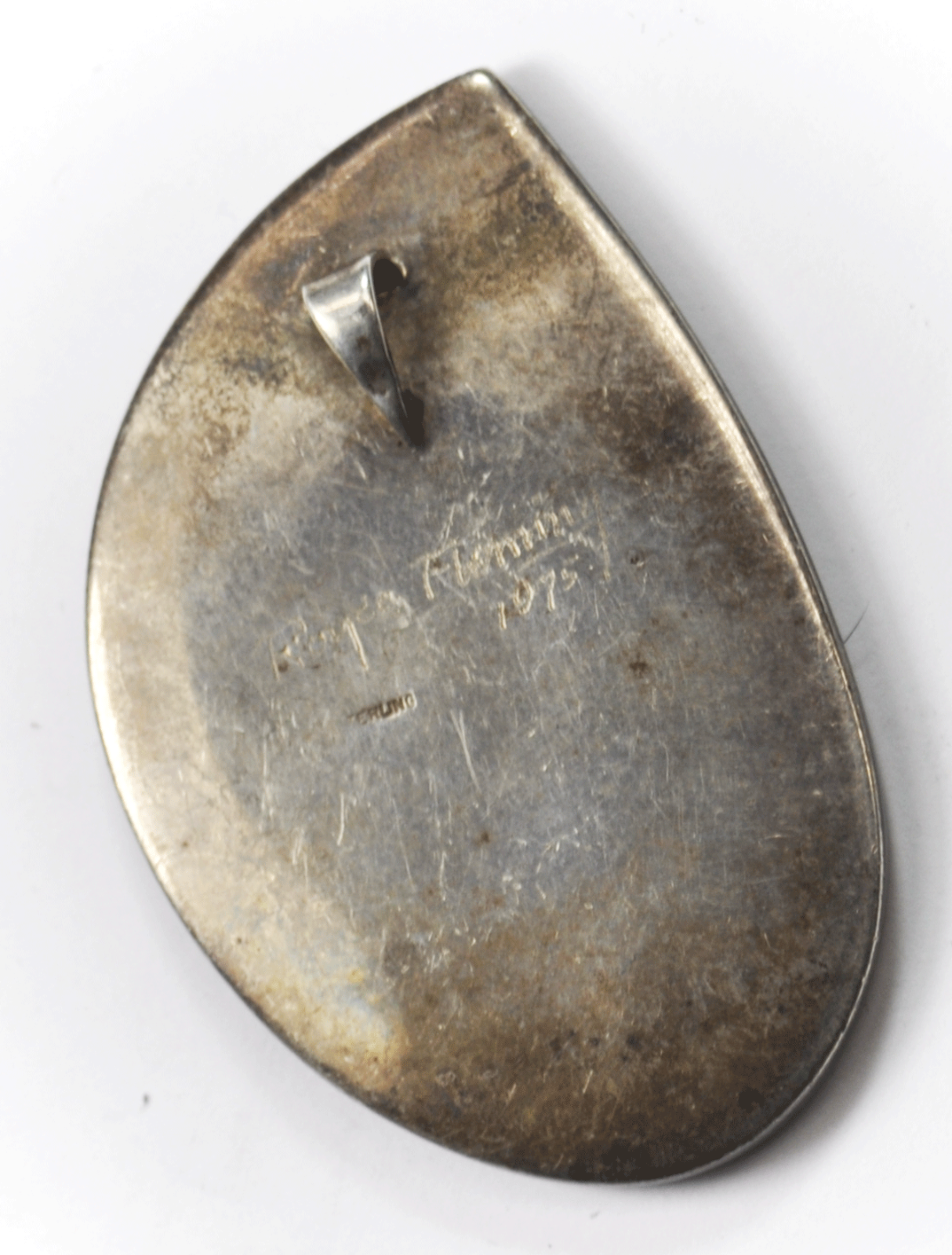 Sterling Turquoise Royce Fleming Turquoise Shadow Box Bear Claw Pendant 2-1/2"