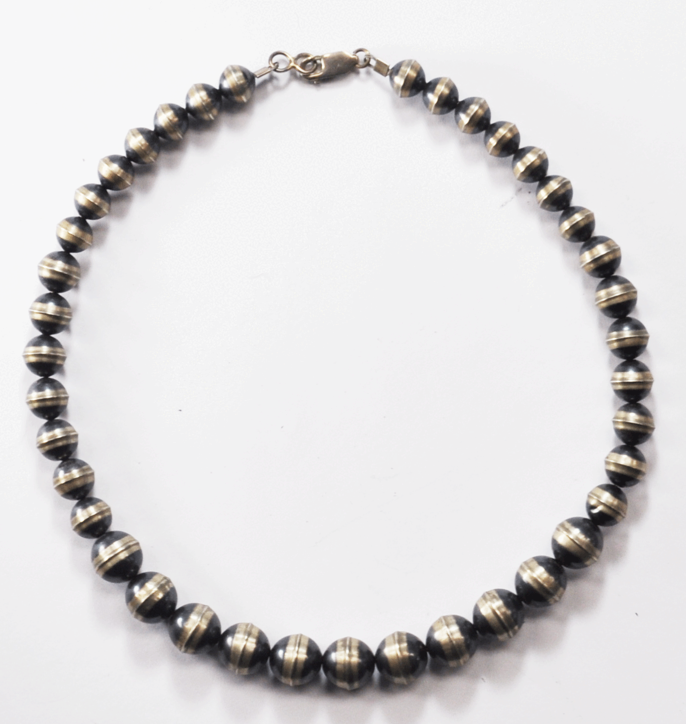 Sterling Two Tone Black & Silver Handmade Bead Necklacce Graduated 9-12mm 16"