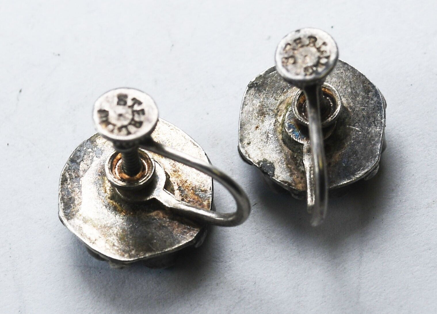 Sterling Vintage Turquoise Cluster Screw Clip On Earrings 12mm