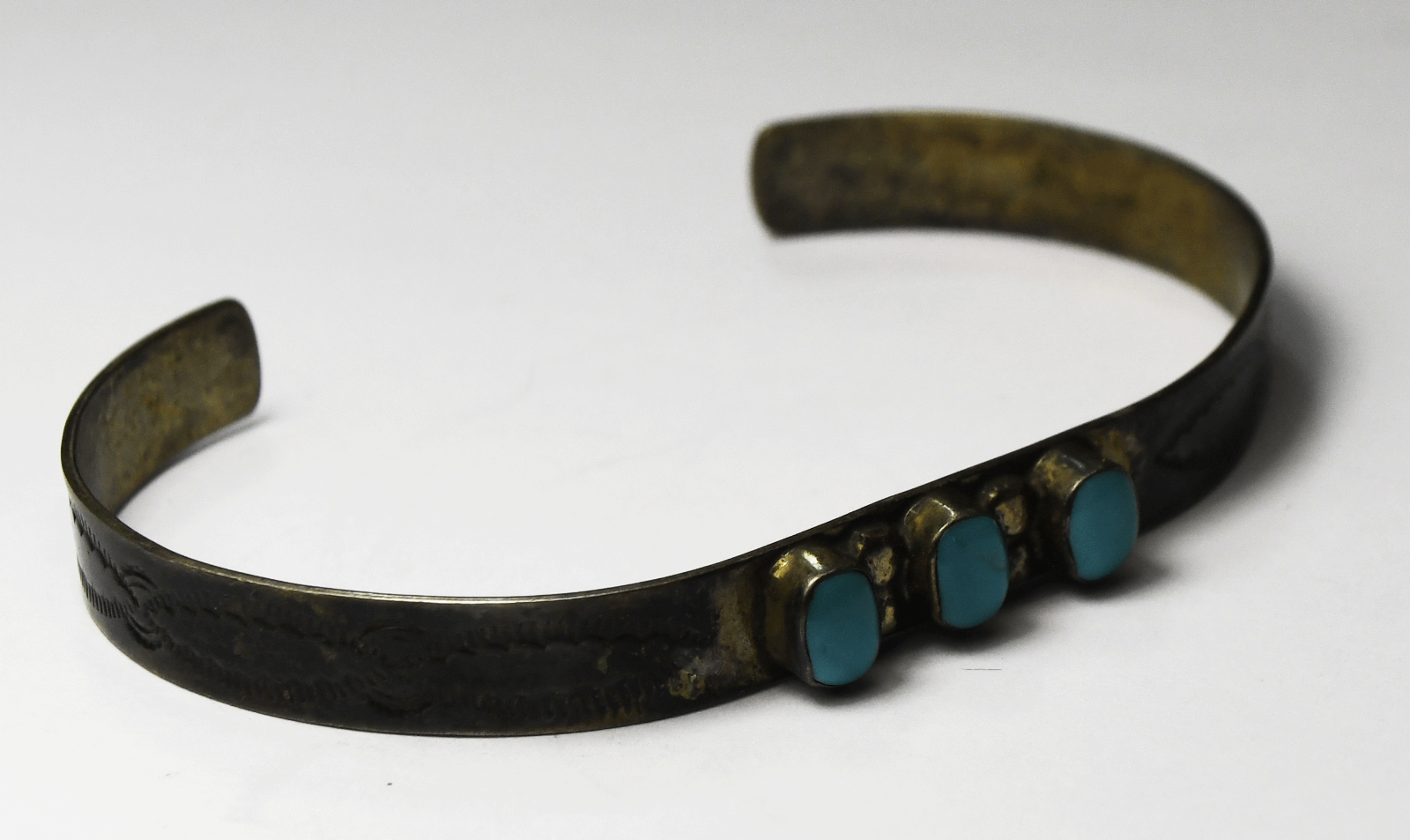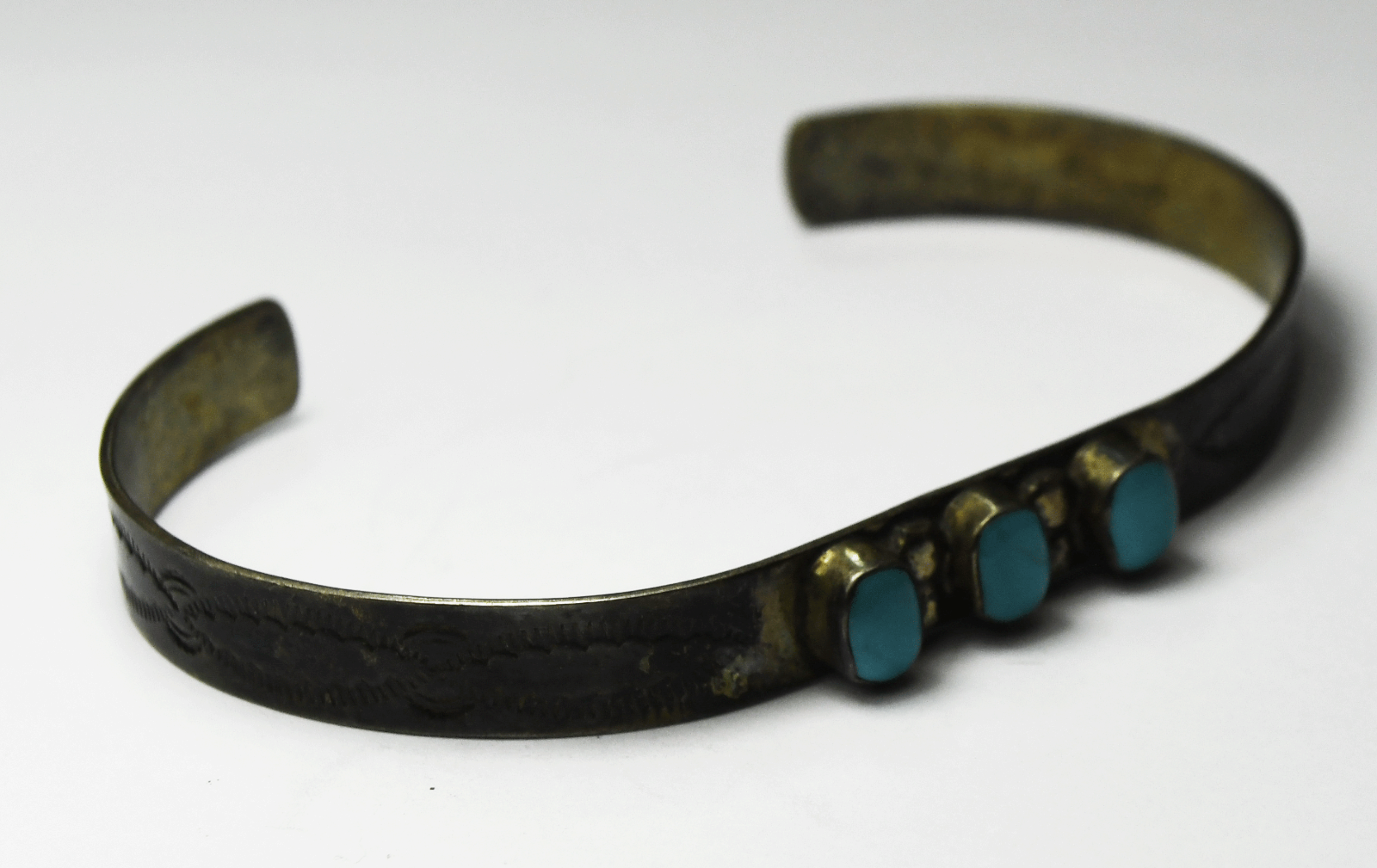 Sterling W Long Antique Triple Turquoise Cuff Bracelet 6mm 7" Wrist