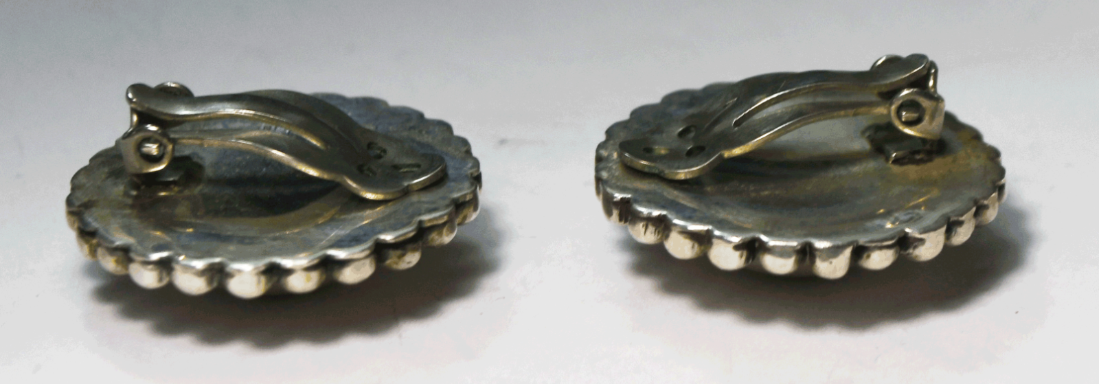 Sterling W Yellowhorse Round Domed Dot Halo Clip On Earrings 27mm