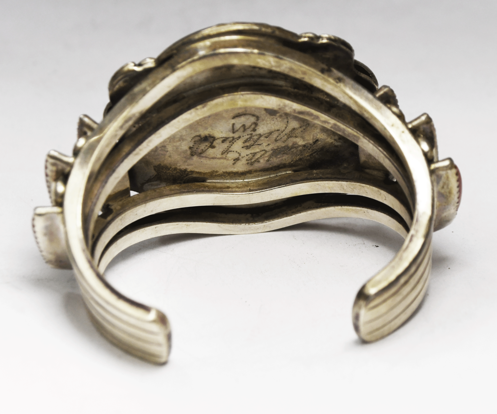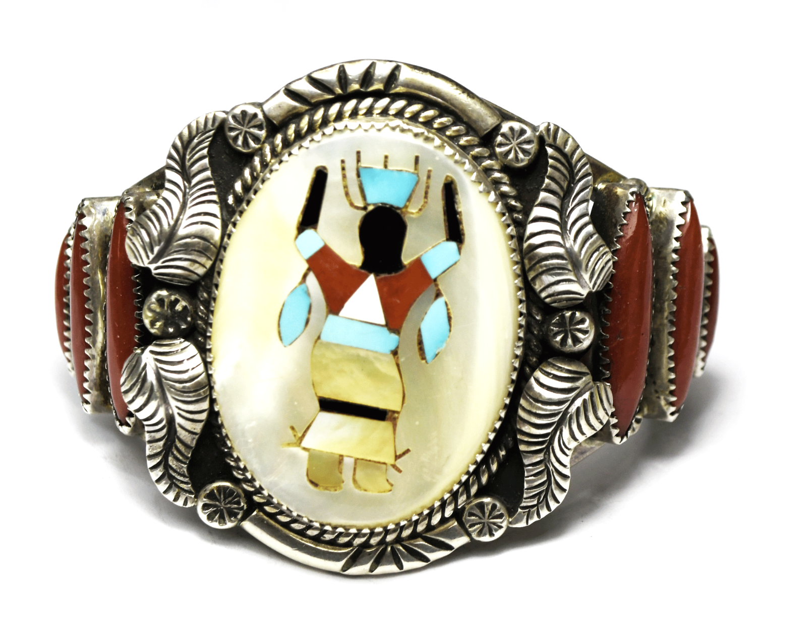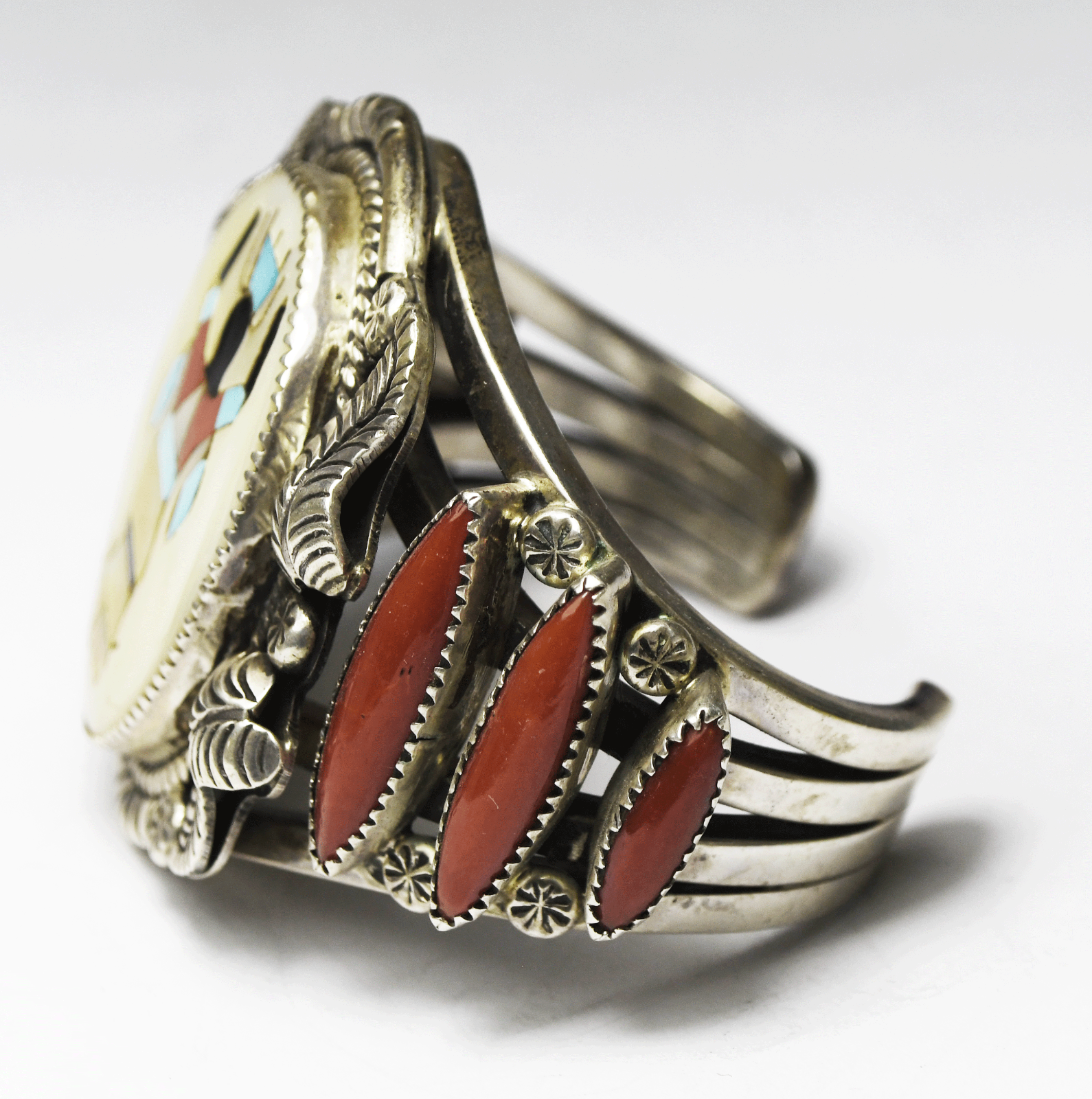 Sterling Walter Mitchell Inlay Coral Heavy 4 Bar Cuff Bracelet 52mm 5-3/4" Wrist