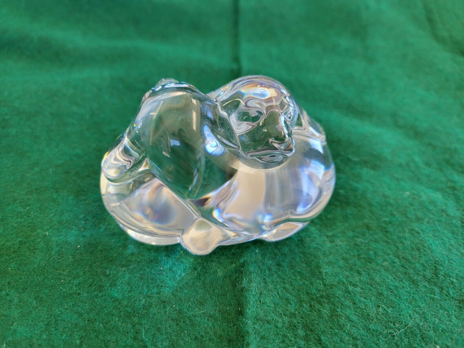 Steuben Glass Sleeping Puppies Signed Lead Crystal Paperweight.