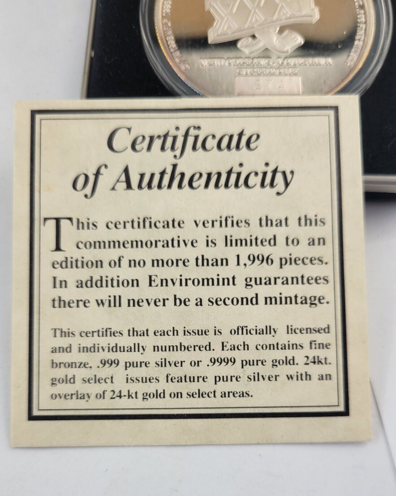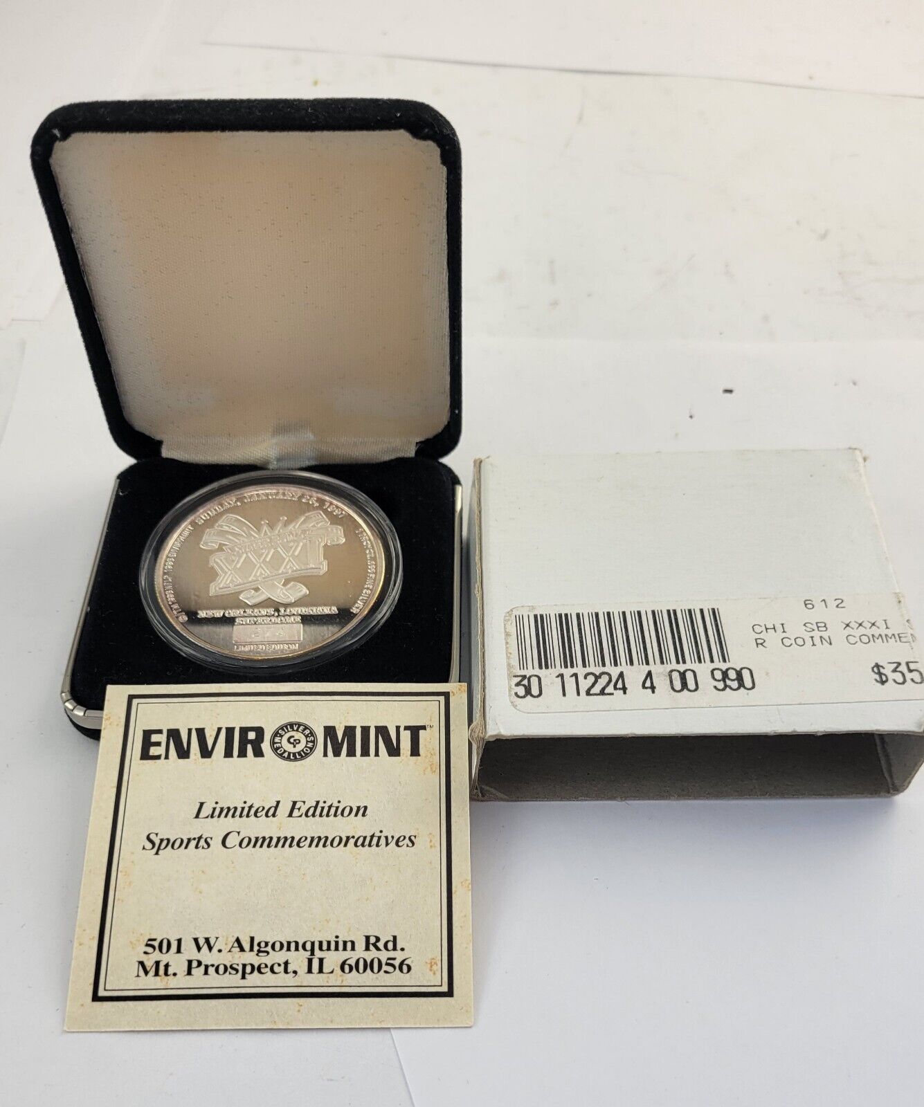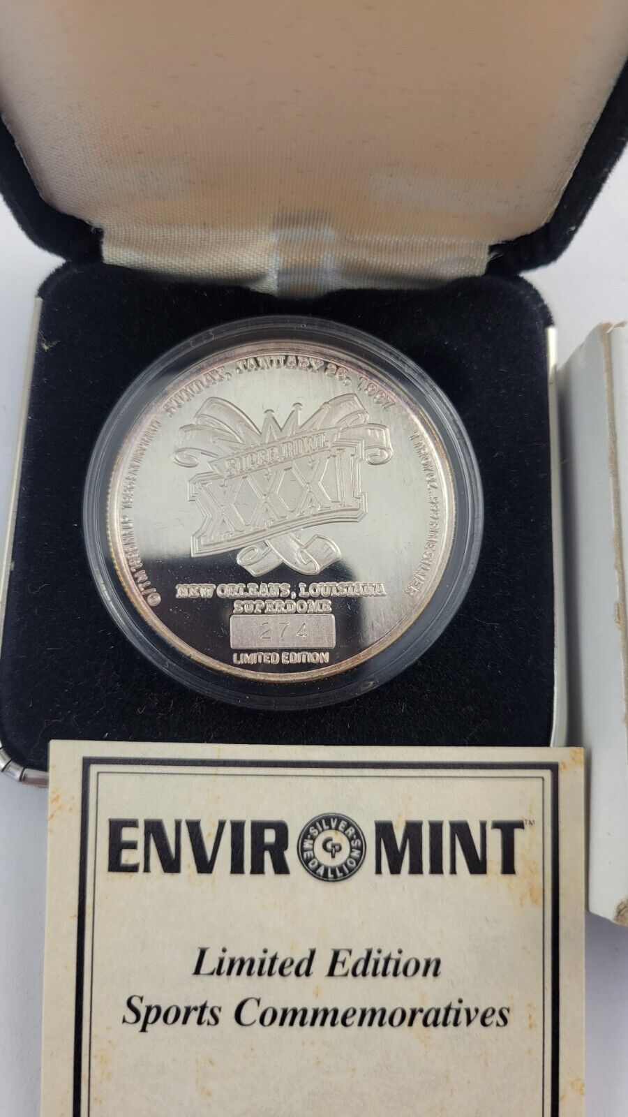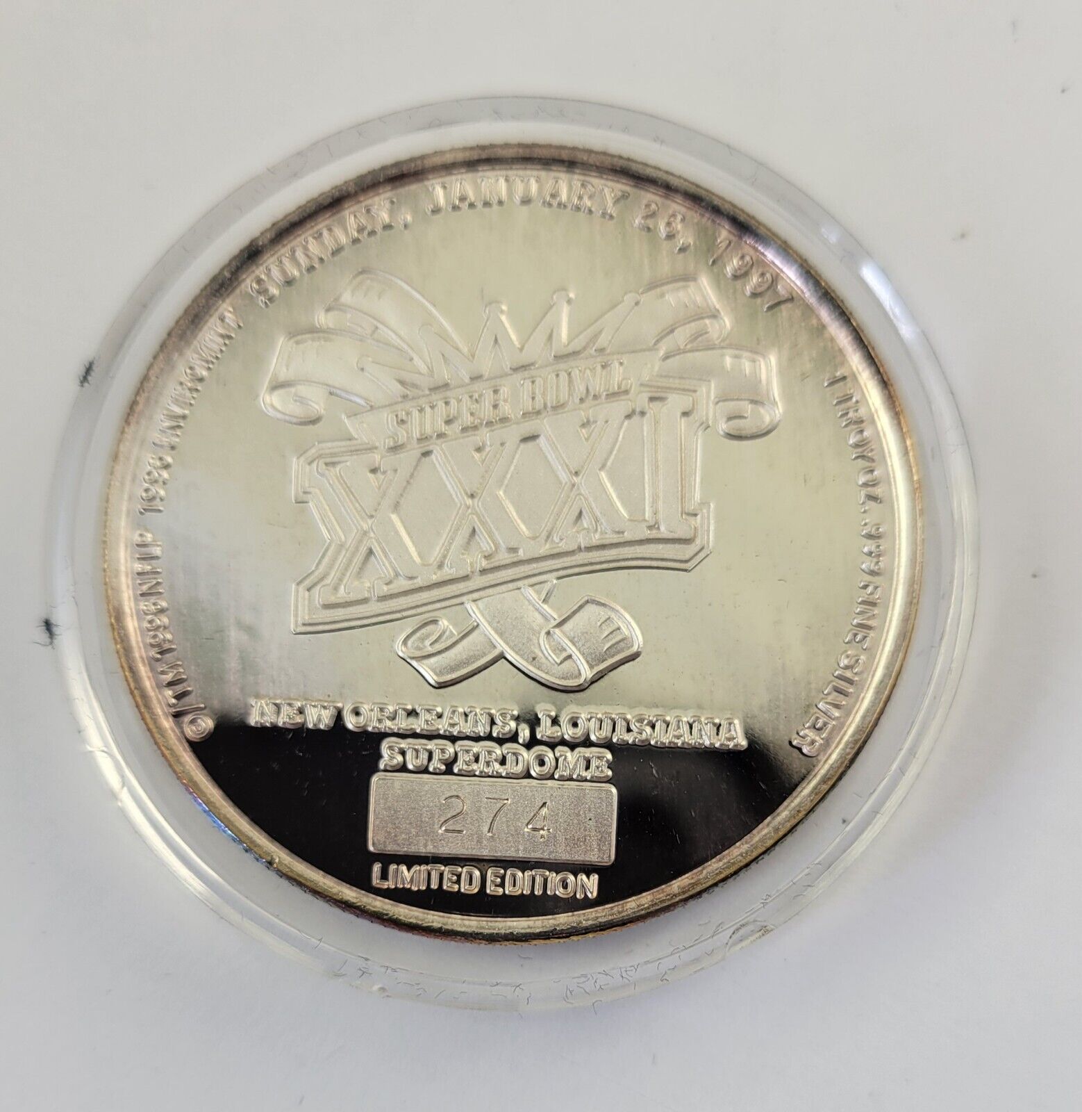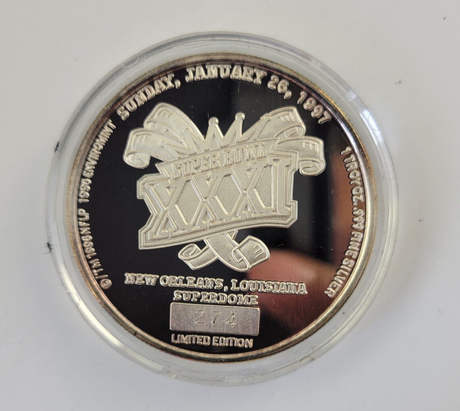 Superbowl XXXI Commemorative Coin .999 Fine Silver Packers Patriots Enviromint