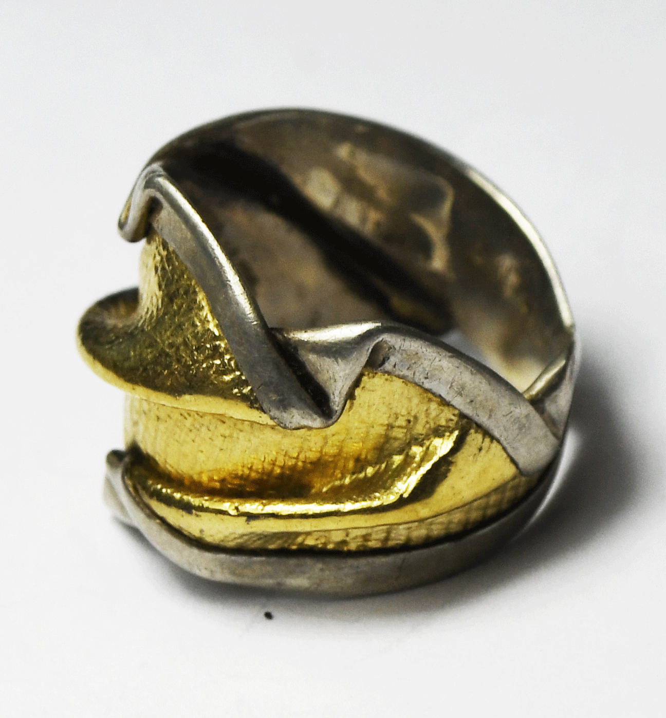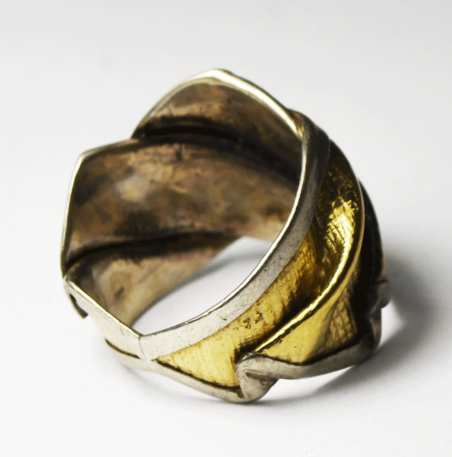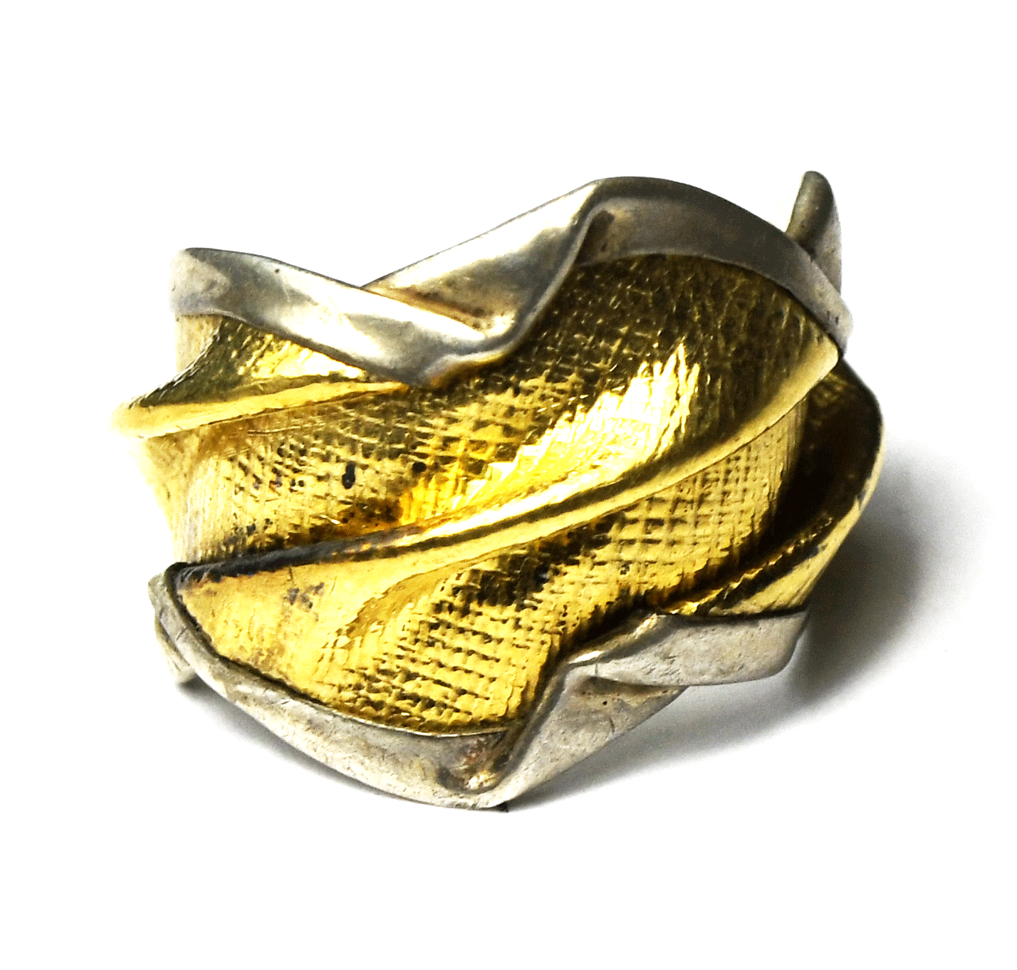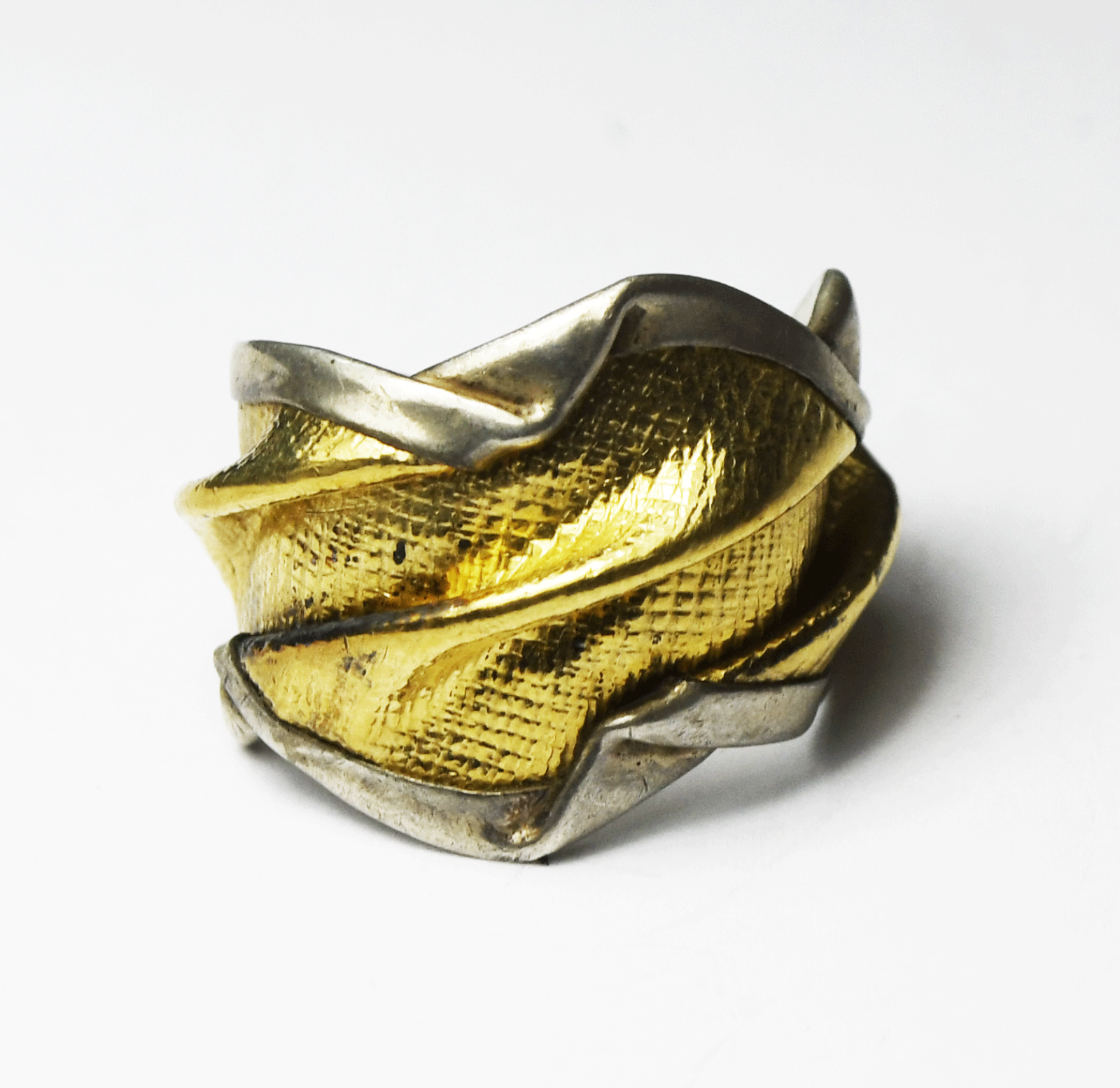 Terrell Sterling & 18k Textured Lace Fabric Fold Ring 18mm Size 7-1/2