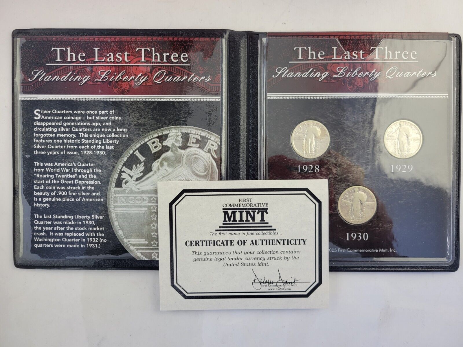 The Last Three Standing Liberty 25c Quarters 1928-1929-1930 w/COA
