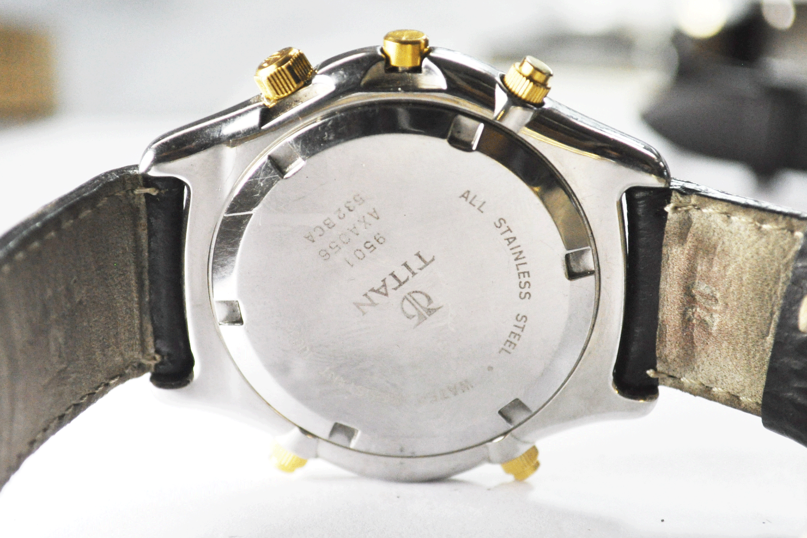 Titan Two Tone Alarm Chronograph Date Wristwatch 42mm Steel WR 100m Quartz