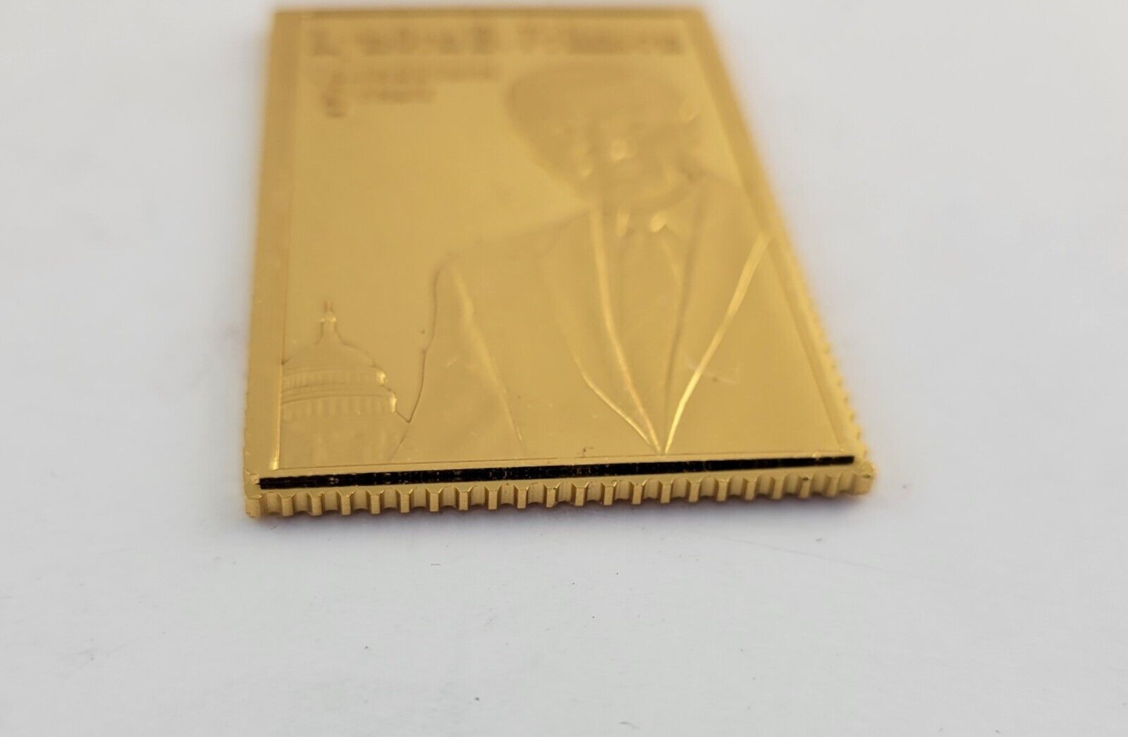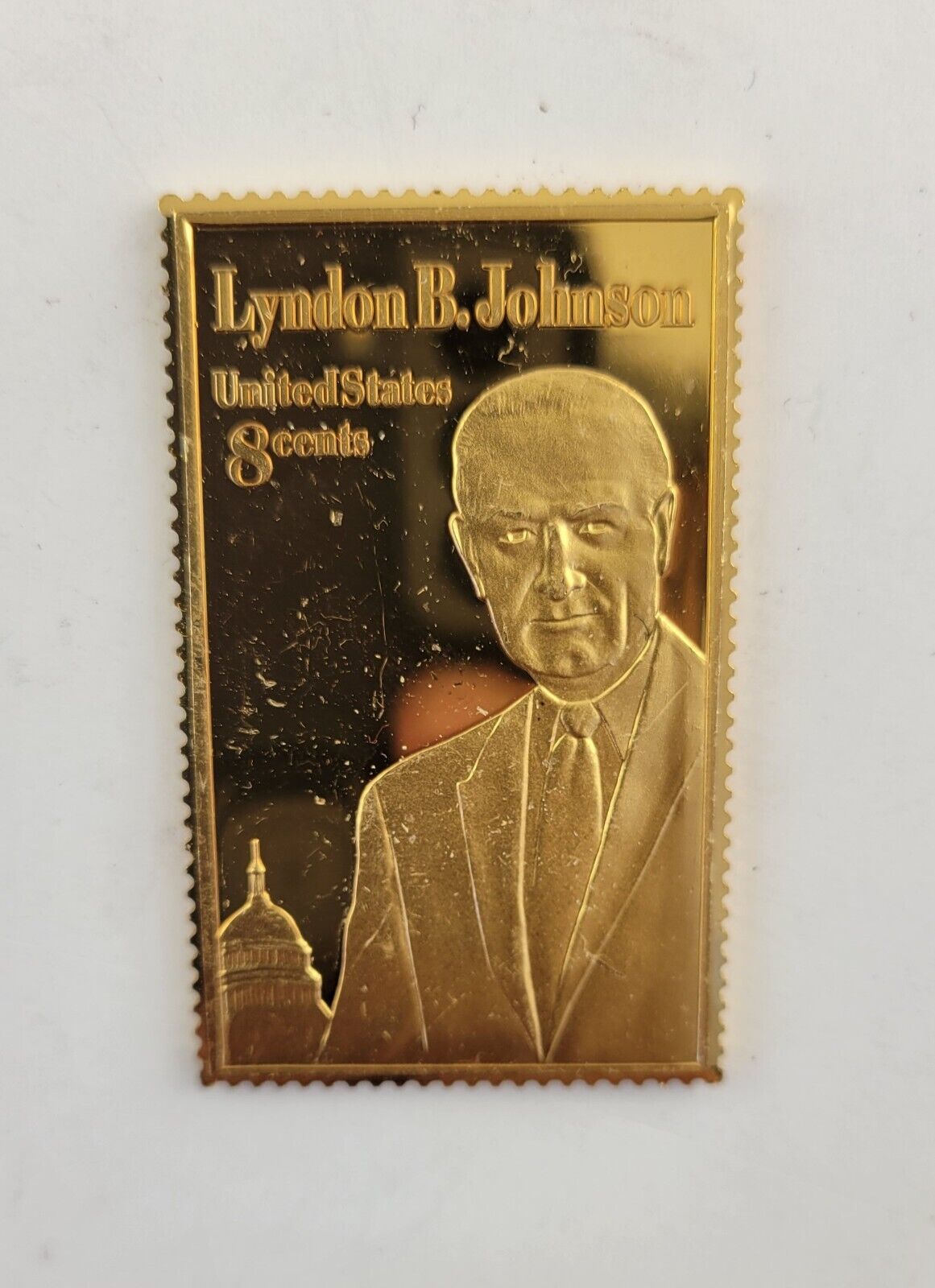 USPS United We Stand .999 Fine Silver Gold Plated Stamp Lyndon B Johnson 1oz.