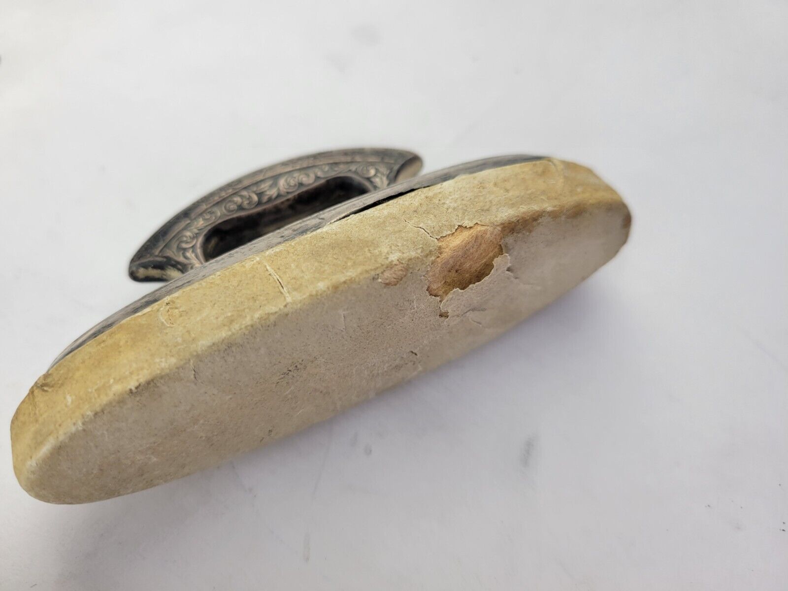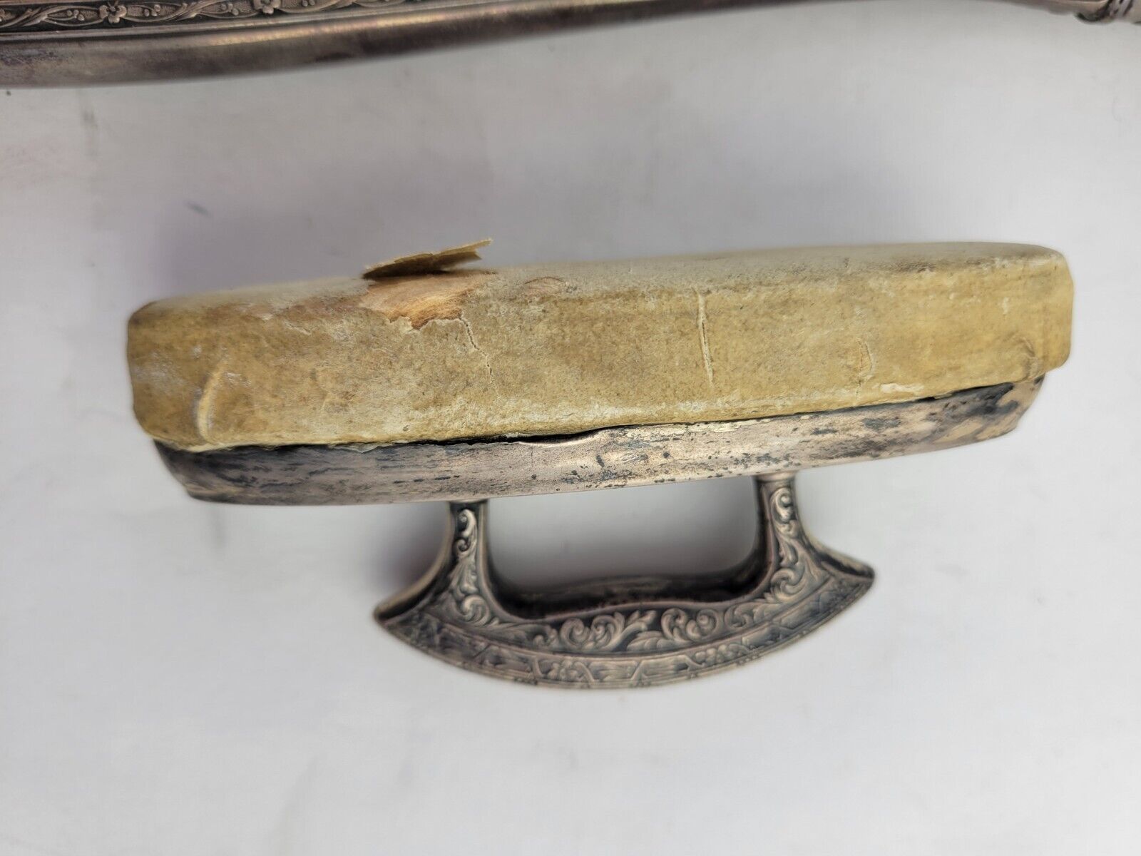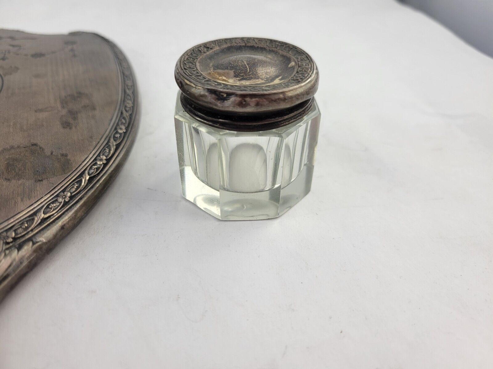 Victorian Sterling Repousse 5 Piece Vanity Set Mirror scissors Nail Buffer. Jar