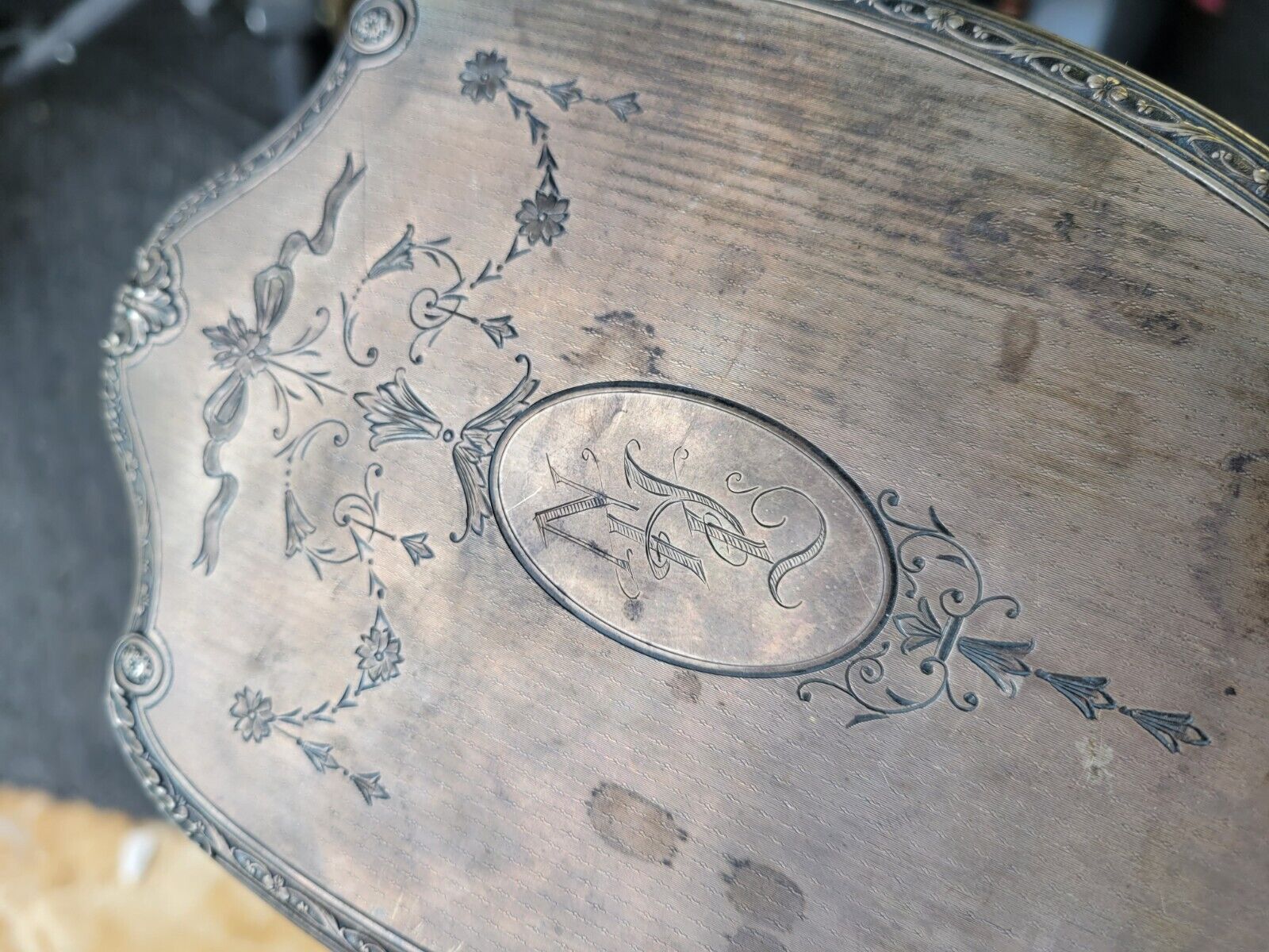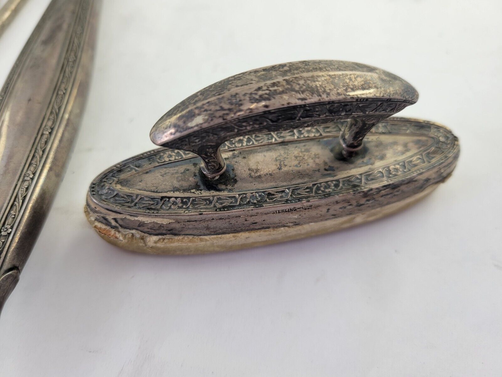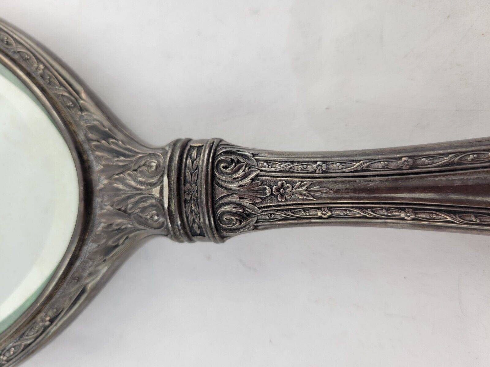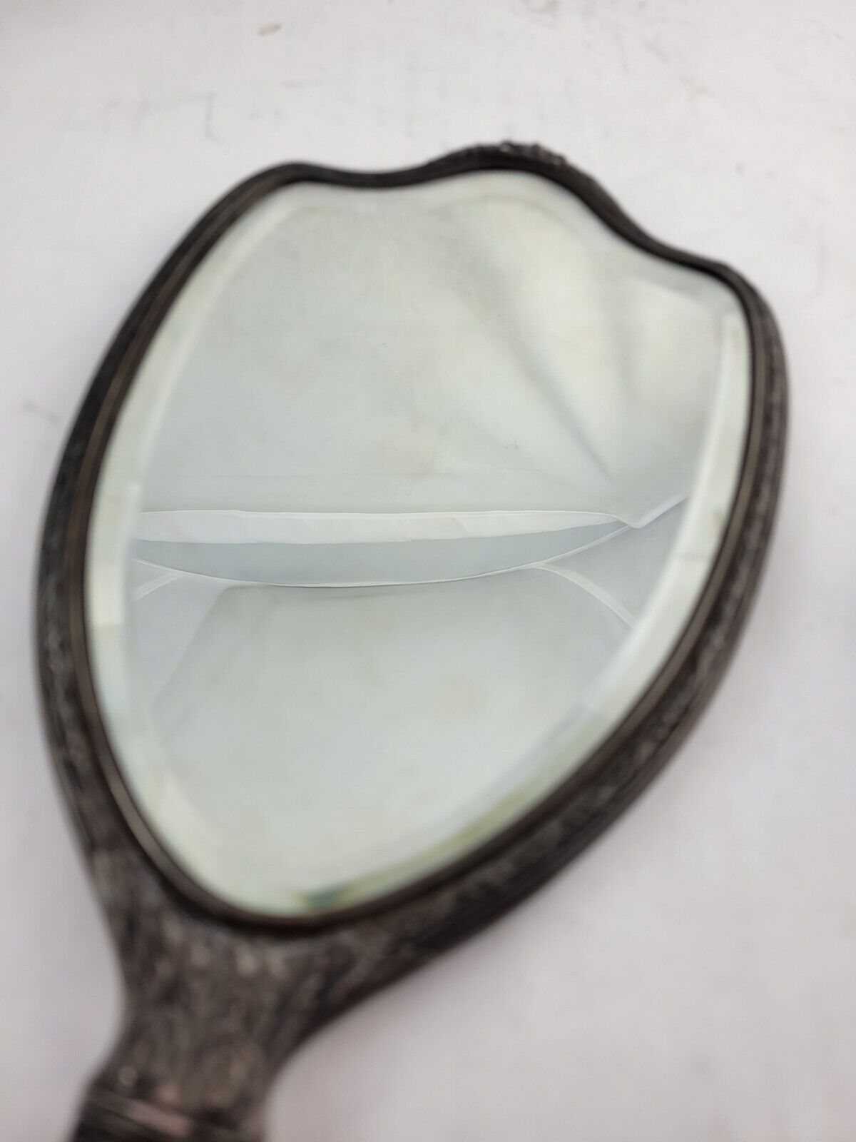 Victorian Sterling Repousse 5 Piece Vanity Set Mirror scissors Nail Buffer