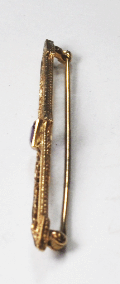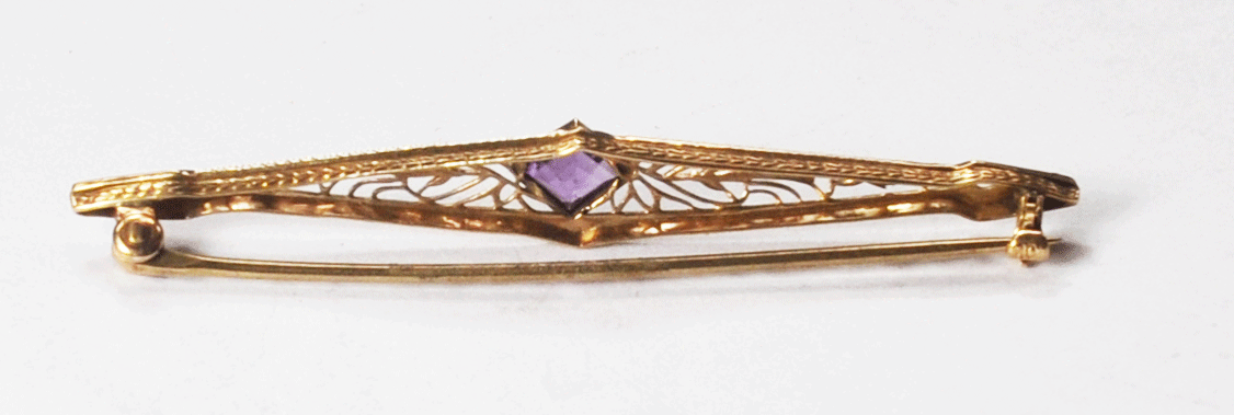 Vintage 10k Rose Gold Amethyst Filigree Brooch Pin 52mm x 8mm