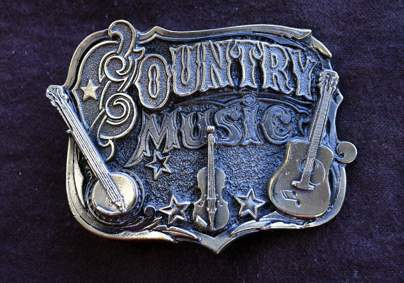 Vintage 1982 Country Music 4.6 oz. Solid Brass Belt Buckle 3 1/4" x 2 1/4"