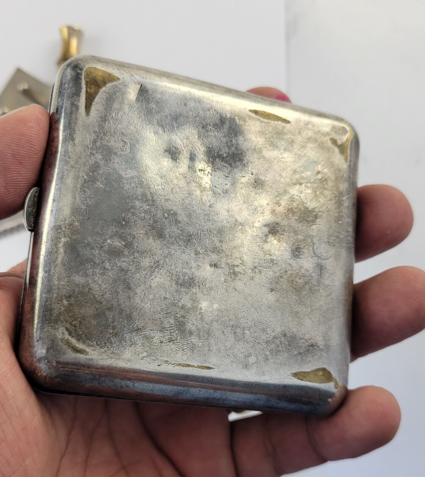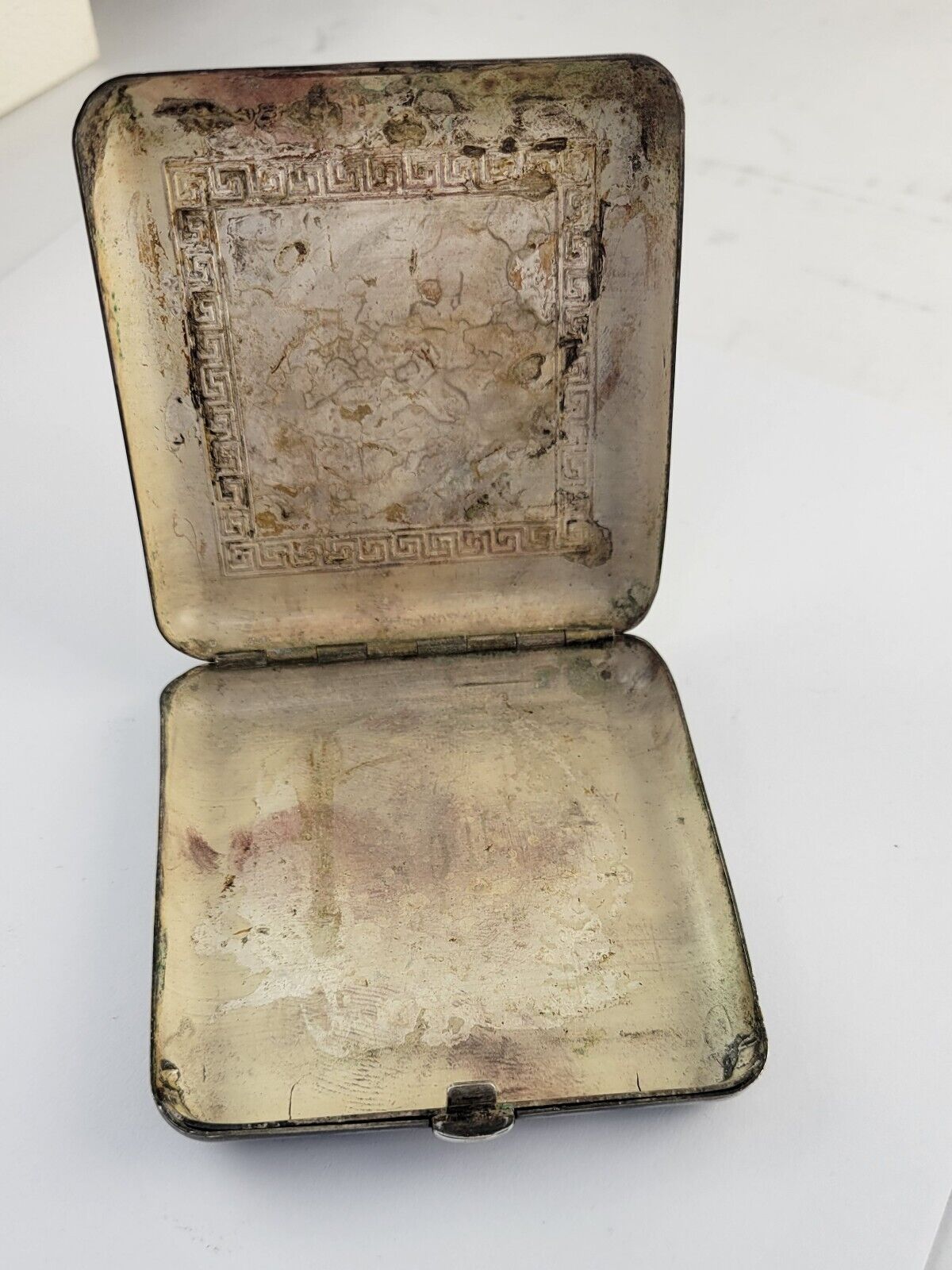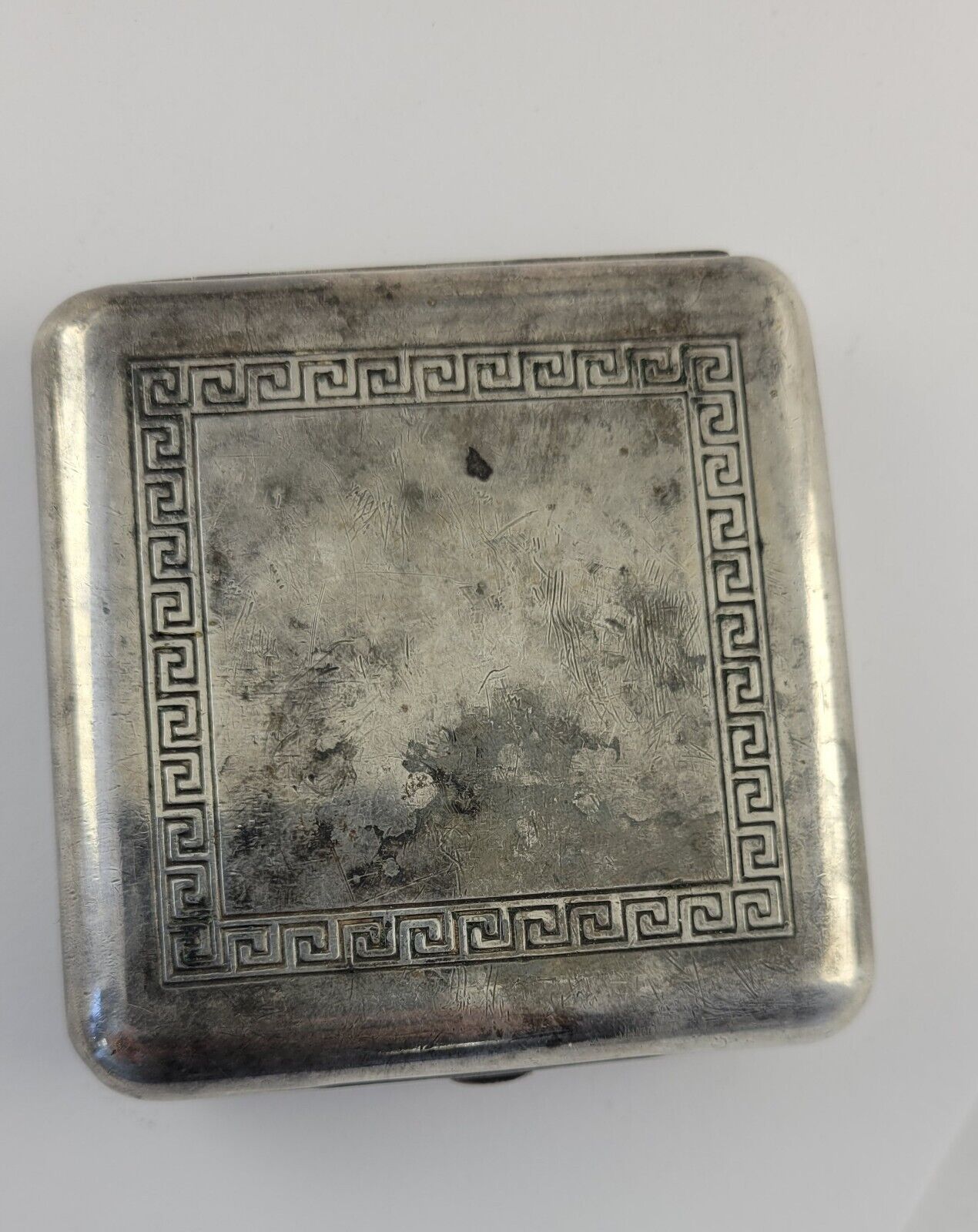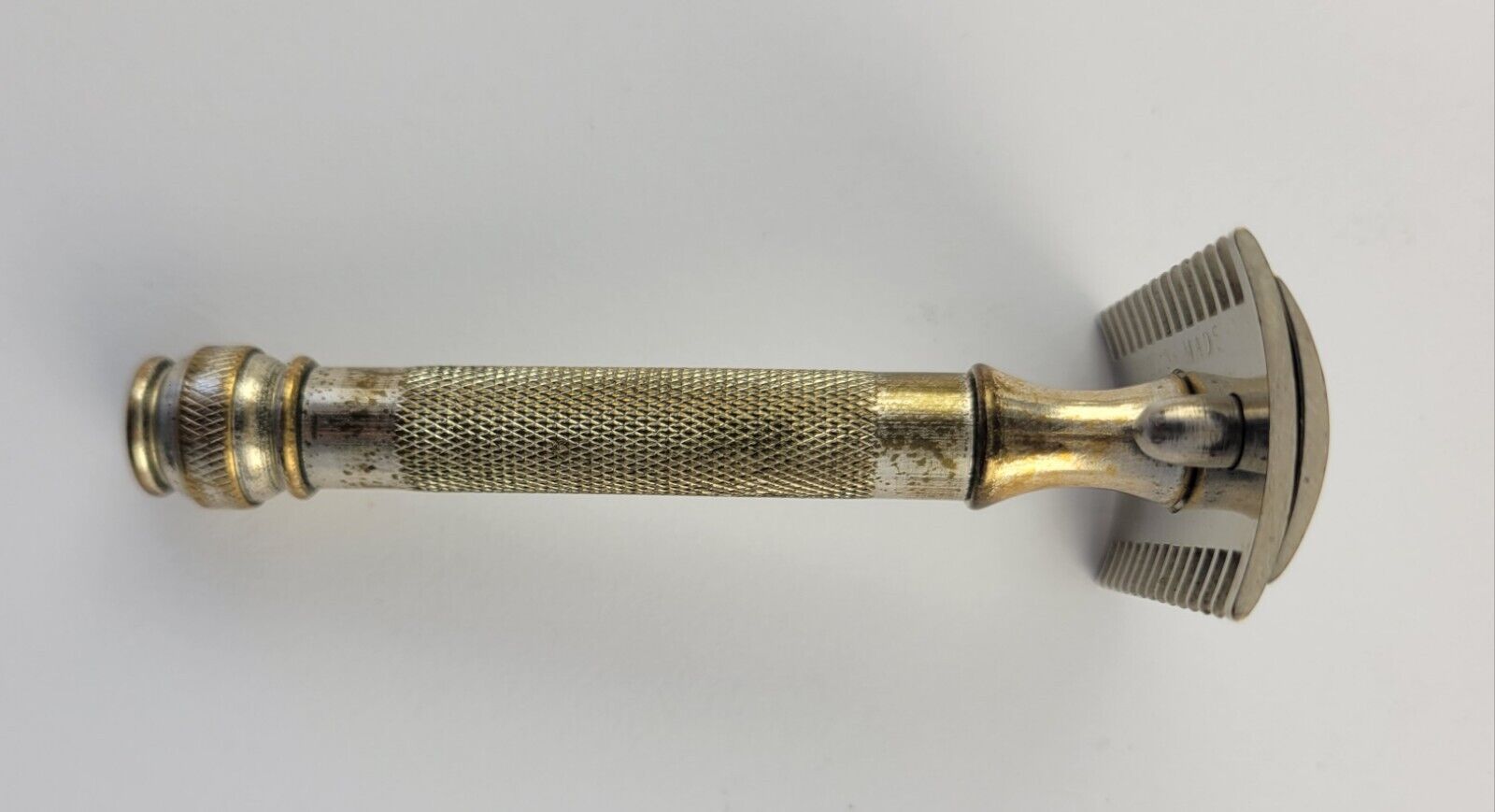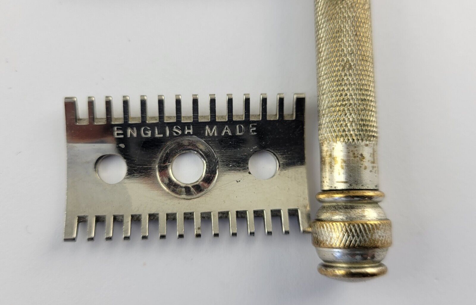 Vintage 4 Piece Travel Razor Made in England Silver Plated Case Greek Border