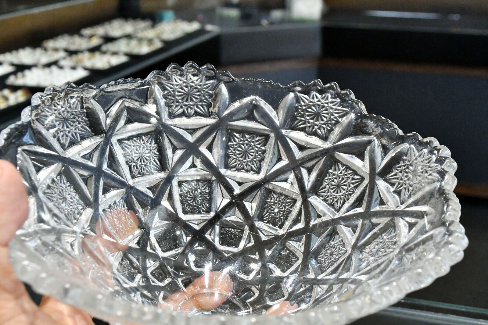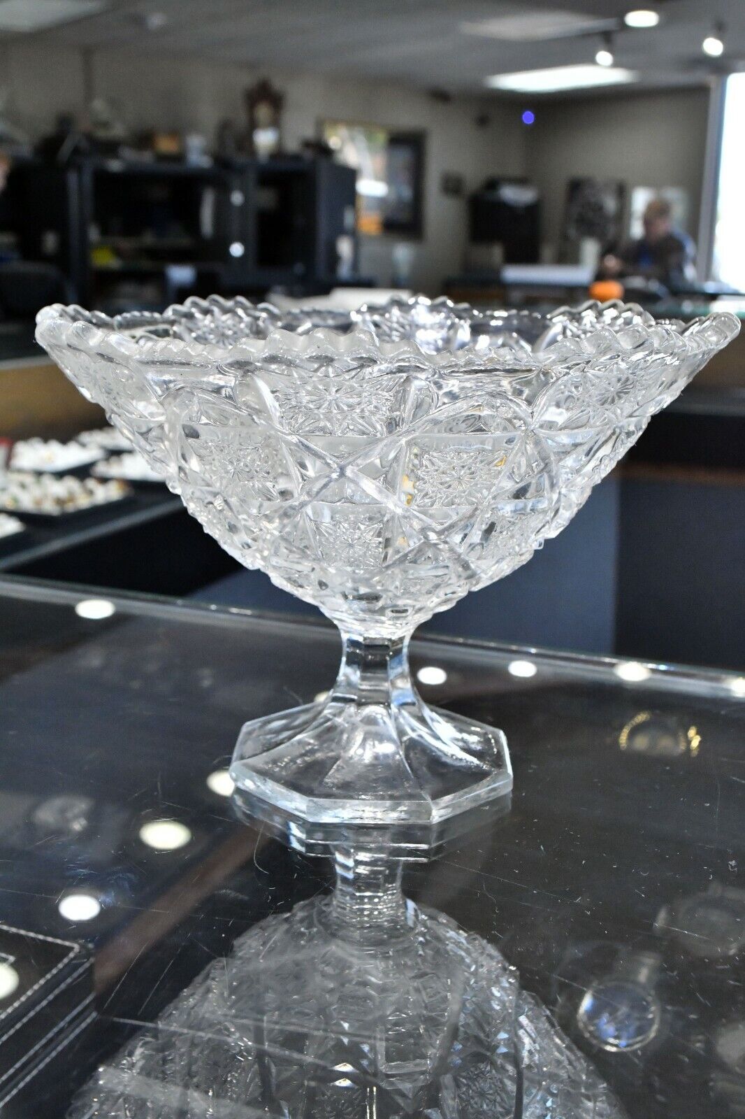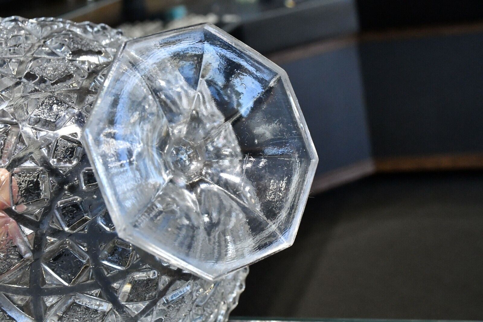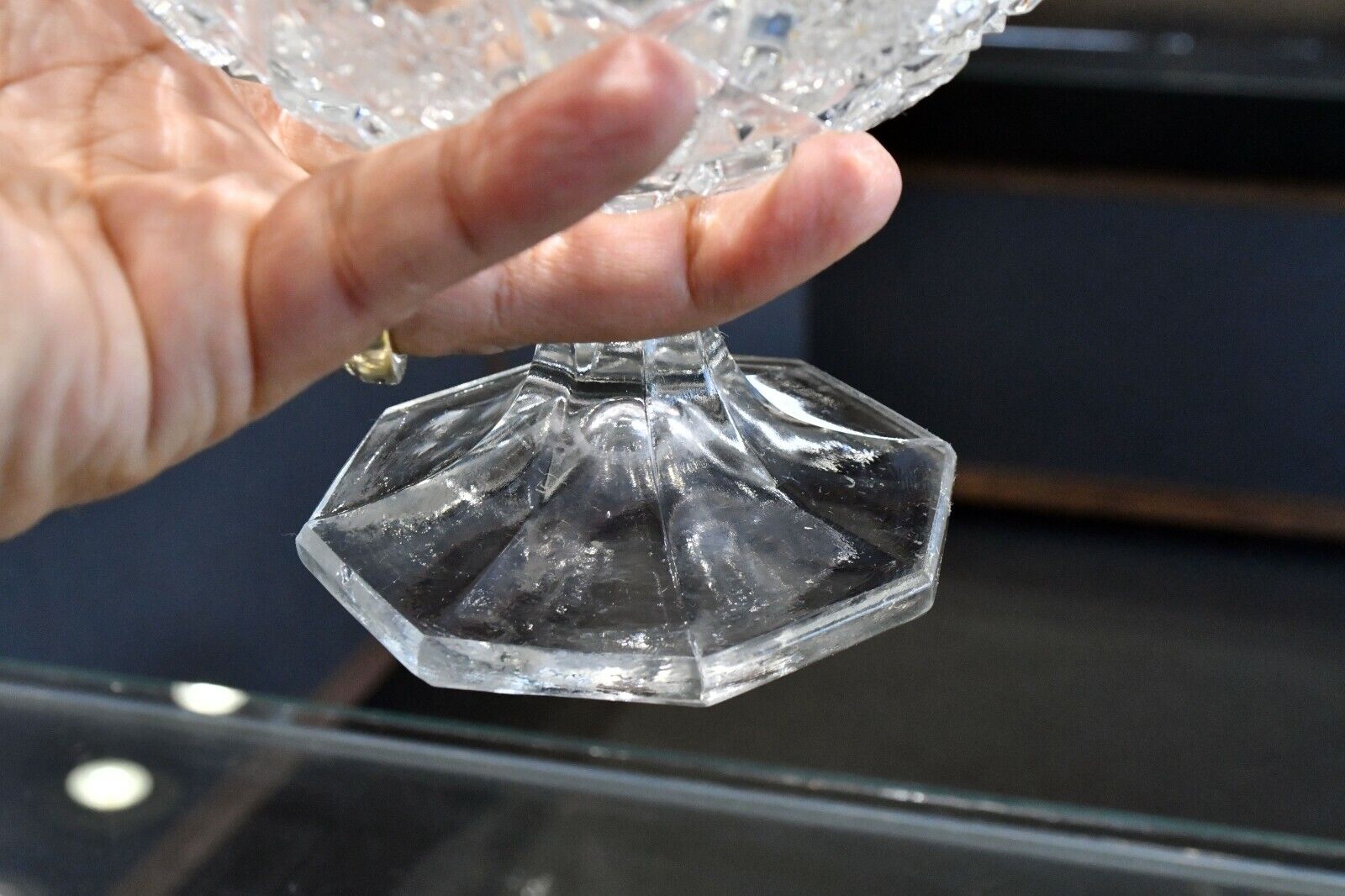 Vintage Bohemian Czech Style Molded Glass Footed Candy Nut Dish 7 1/2" x 5 1/4"