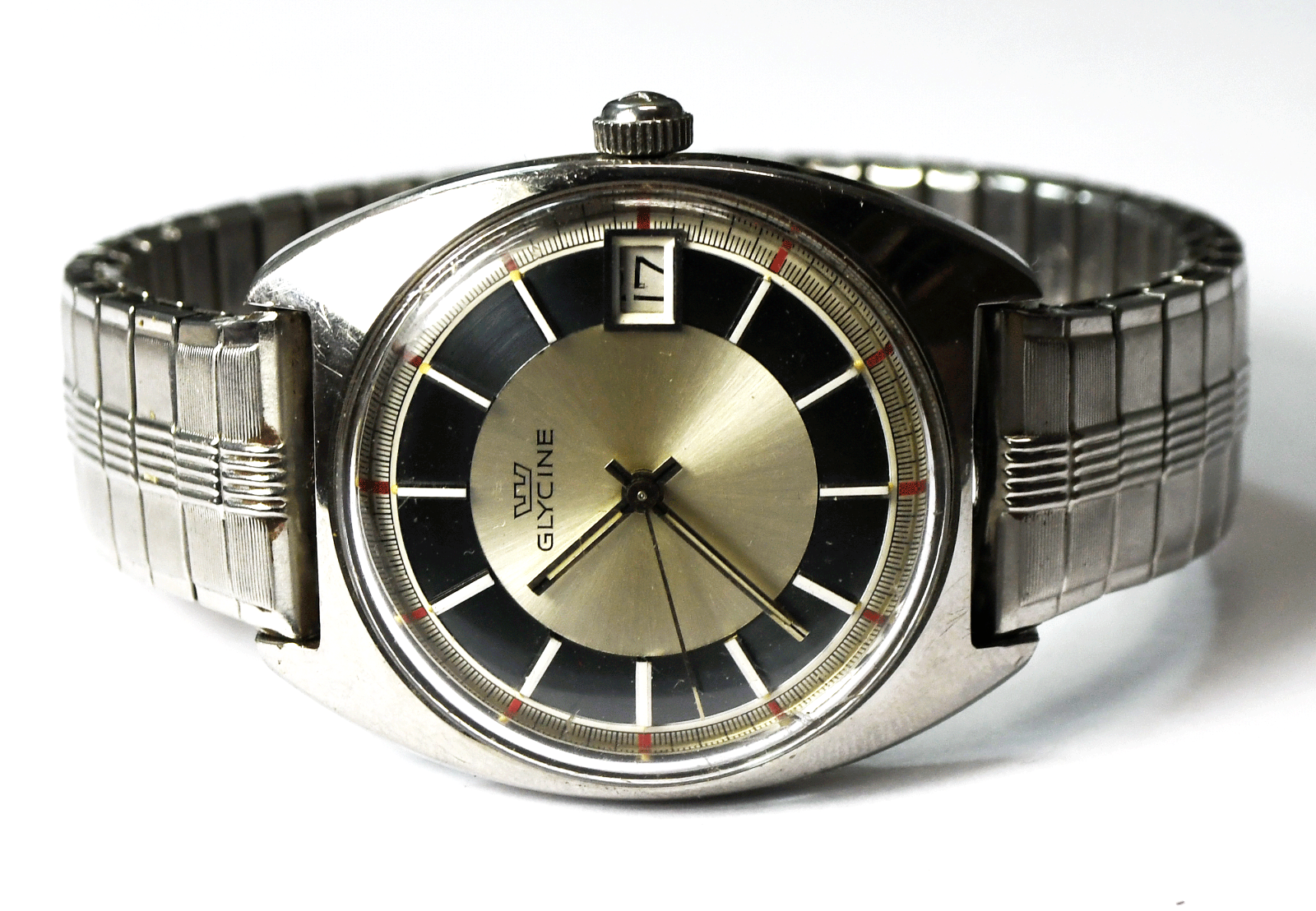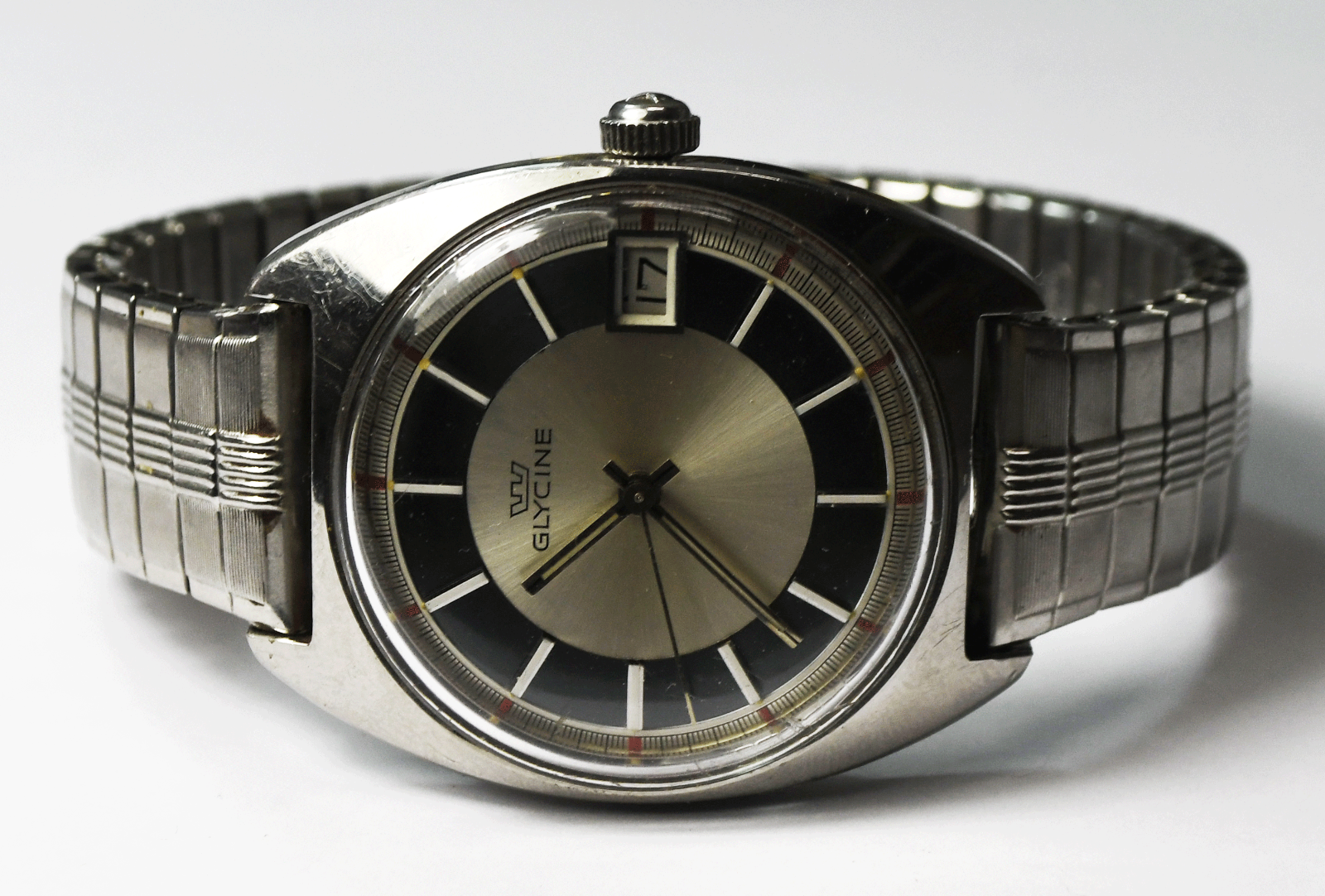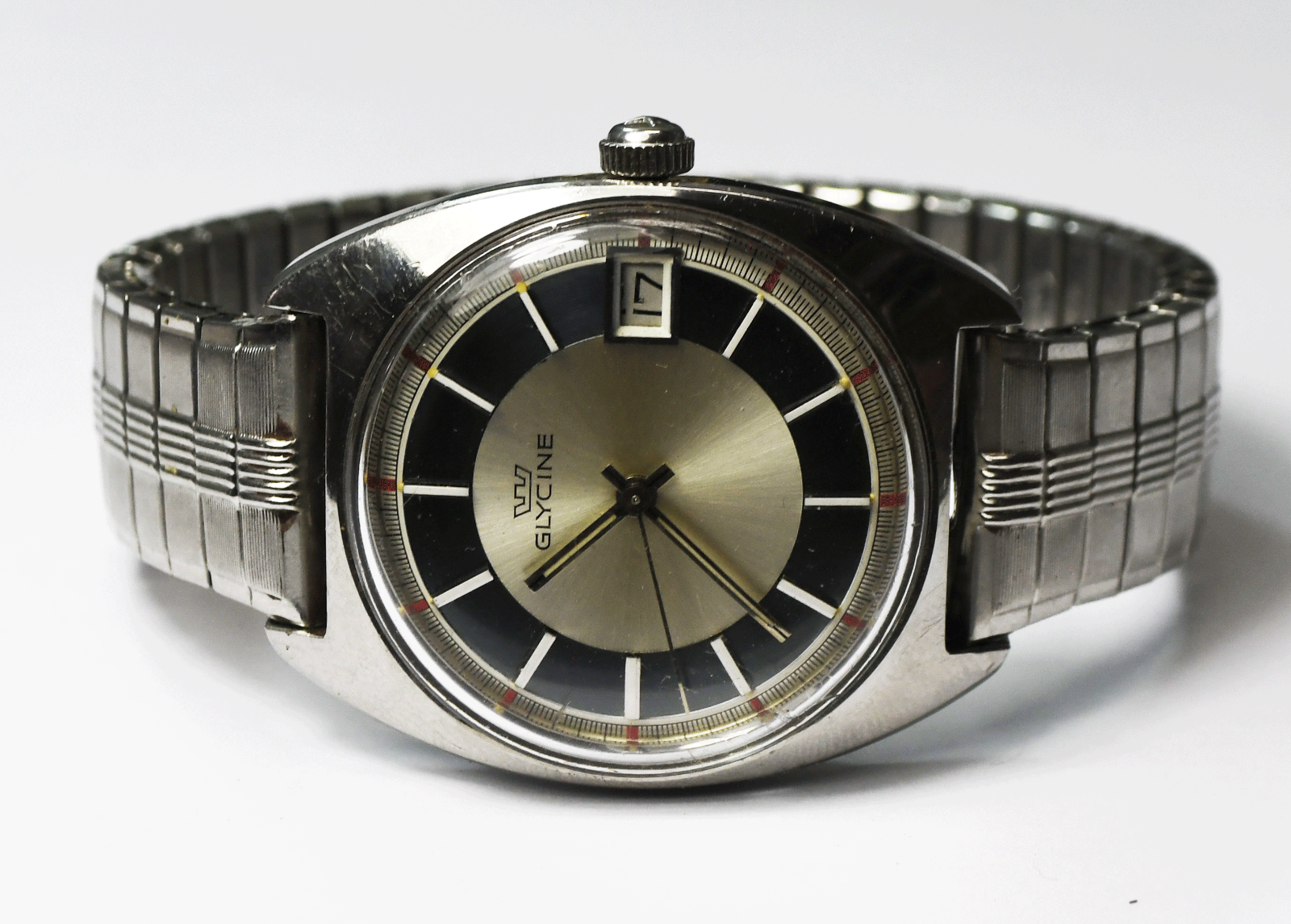 Vintage Glycine Manual Wind 1803 Wristwatch 33mm Stainless 2-Tone Pie Pan Dial