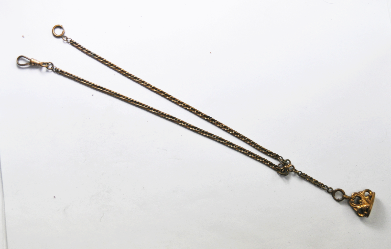 Vintage Gold Filled 2.5mm Pocket Watch 15.5" Chain Victorian Fob 20mm