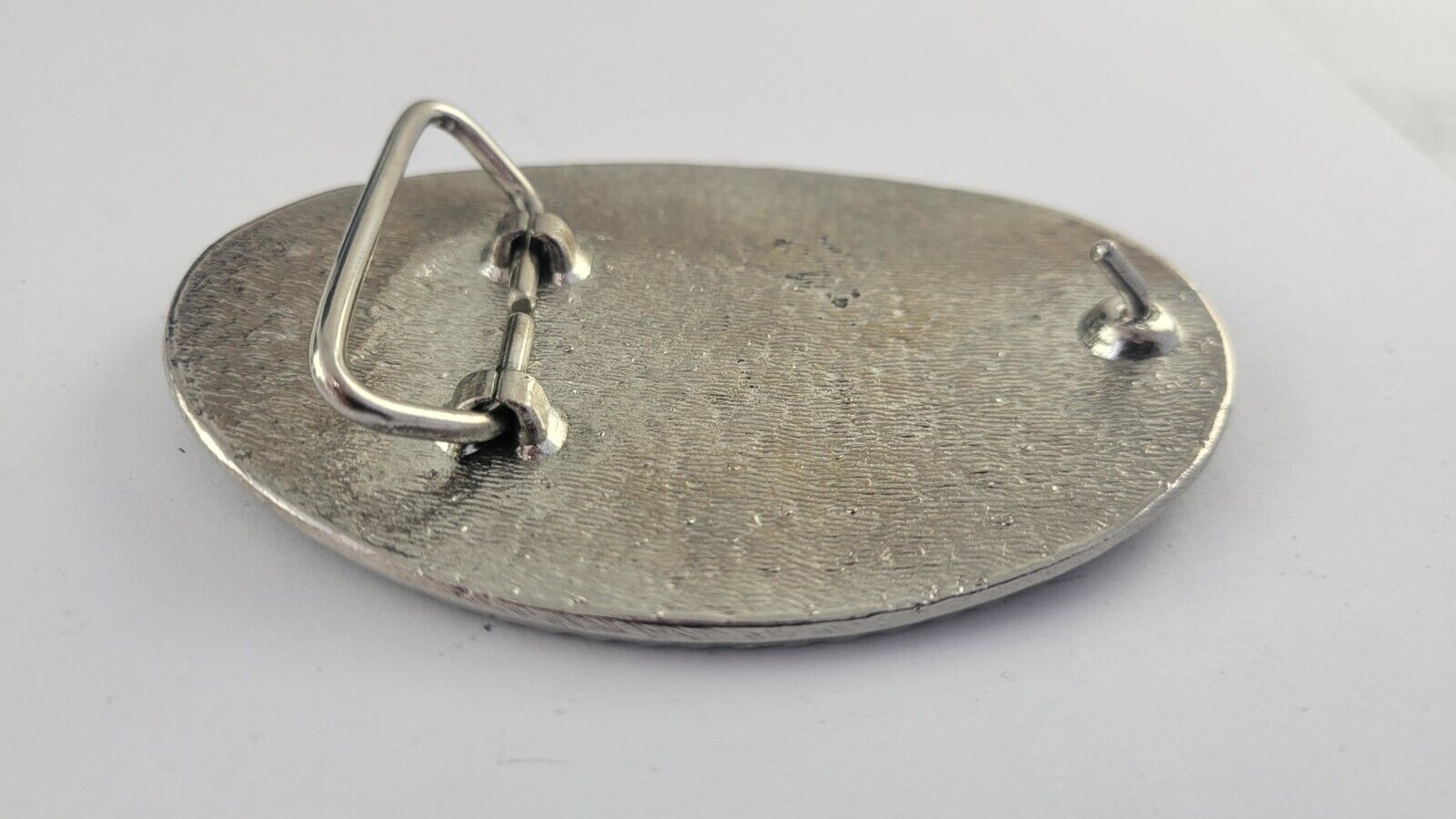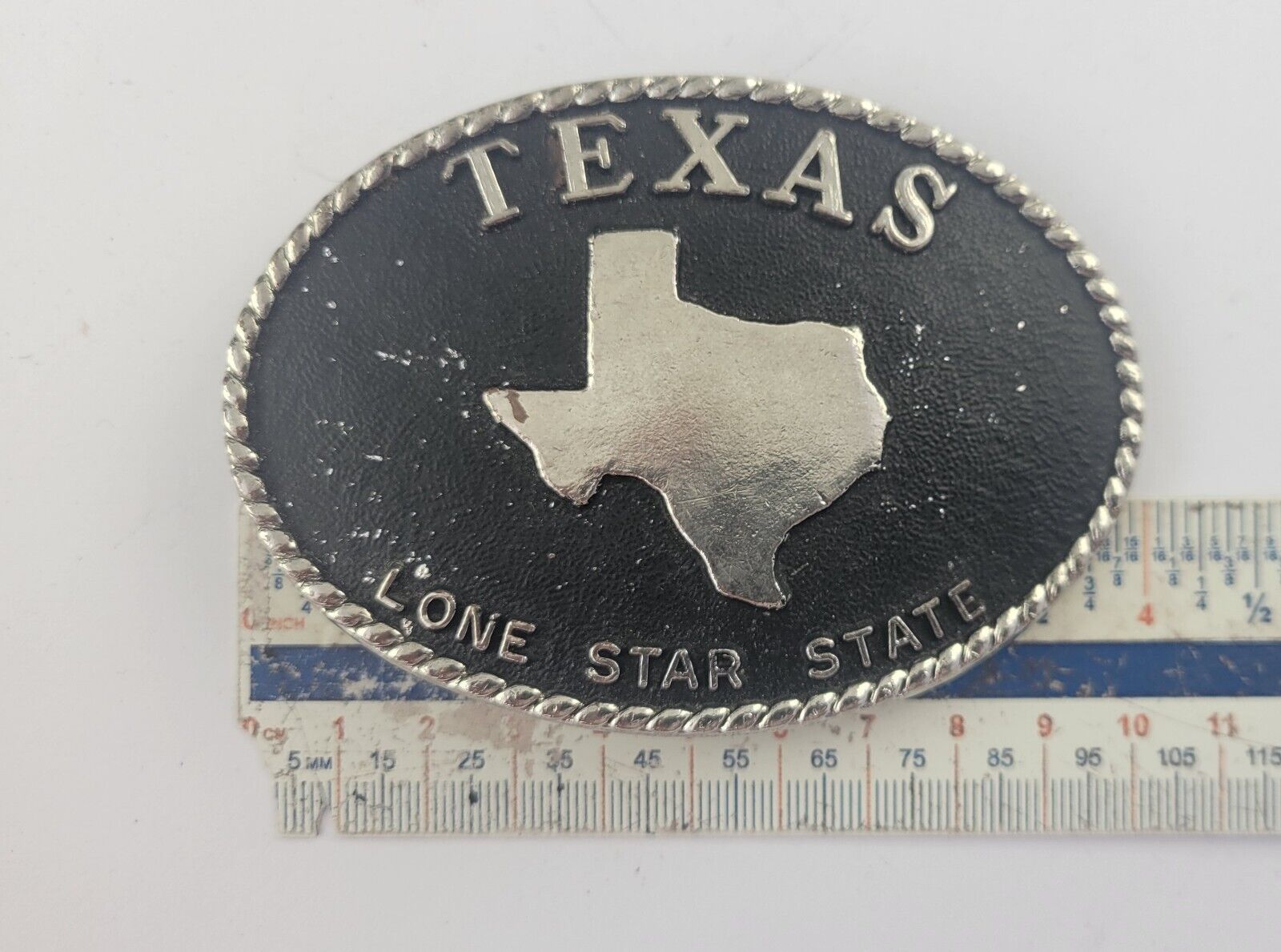 Vintage Lone Star State Texas State Belt Buckle Black Oval Worn 4 x 2 3/4"