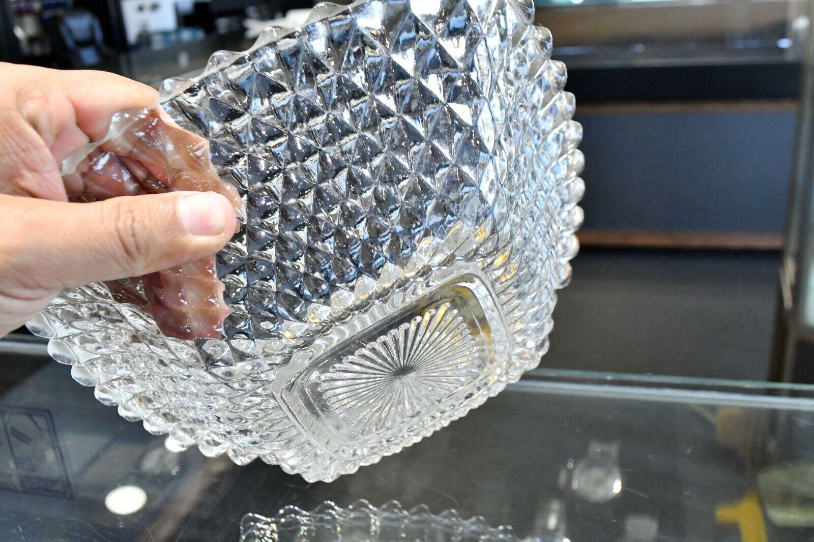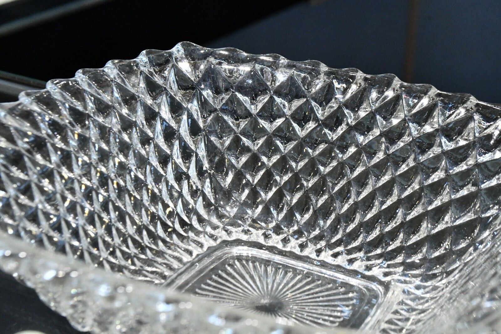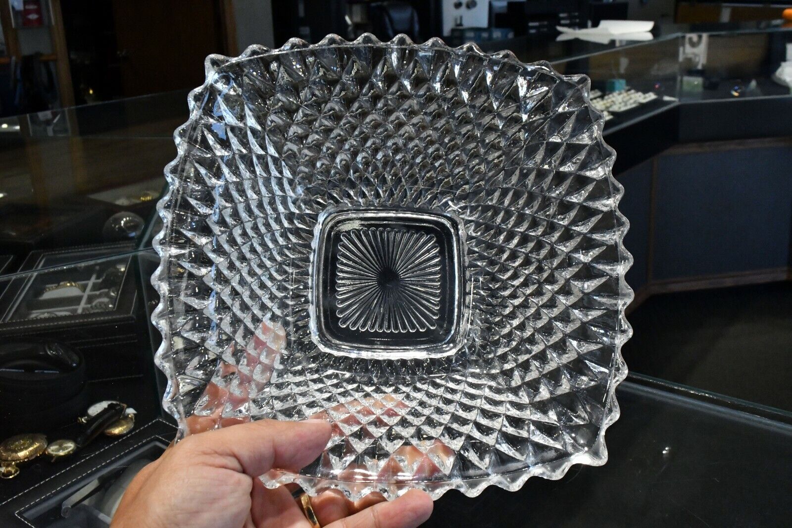 Vintage Molded Crystal Glass Square 8" x 8" Vegetable Bowl Candy Dish
