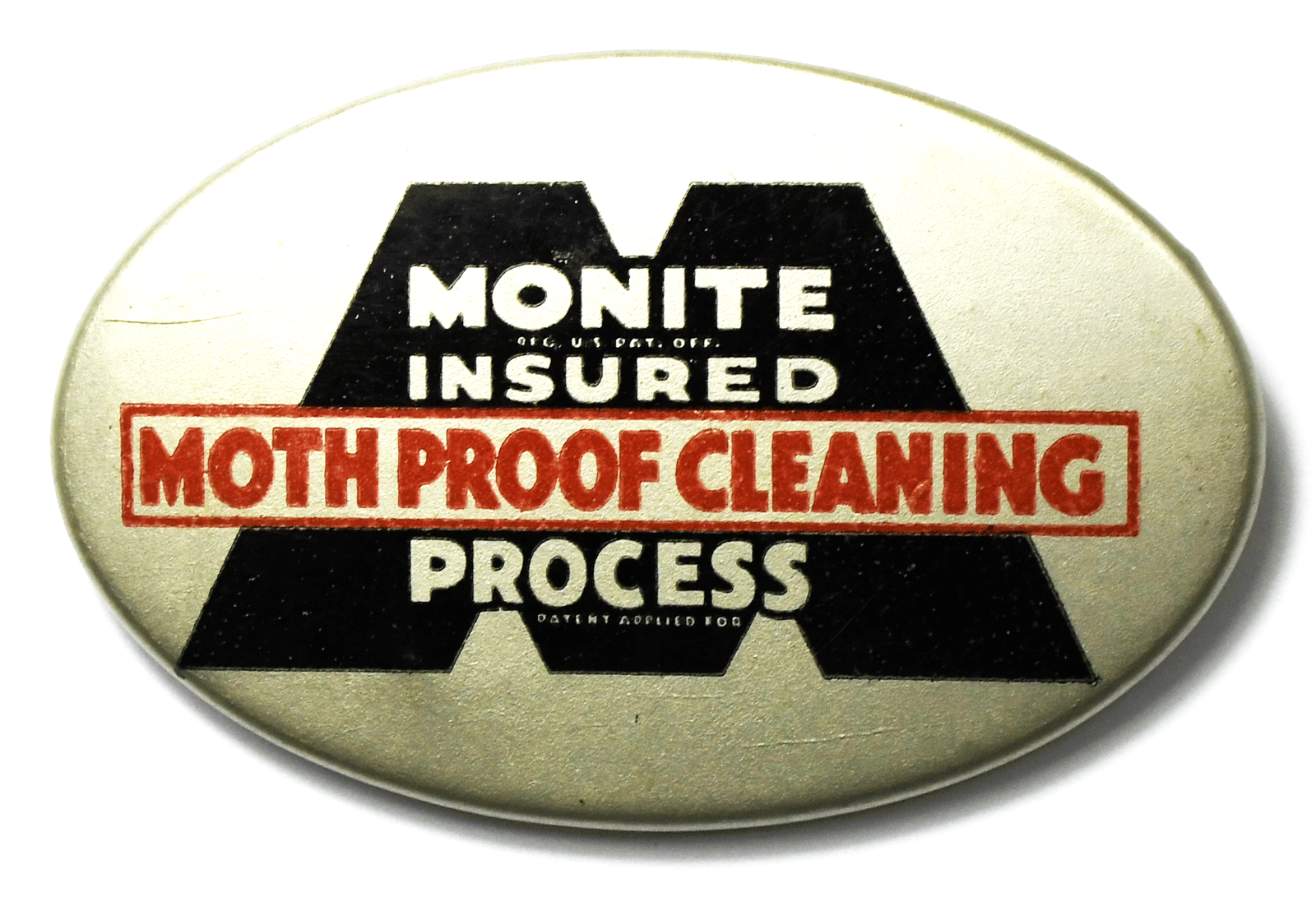 Vintage Moth Proof Cleaning Monite Insured Process Pinback Button 2-5/8"
