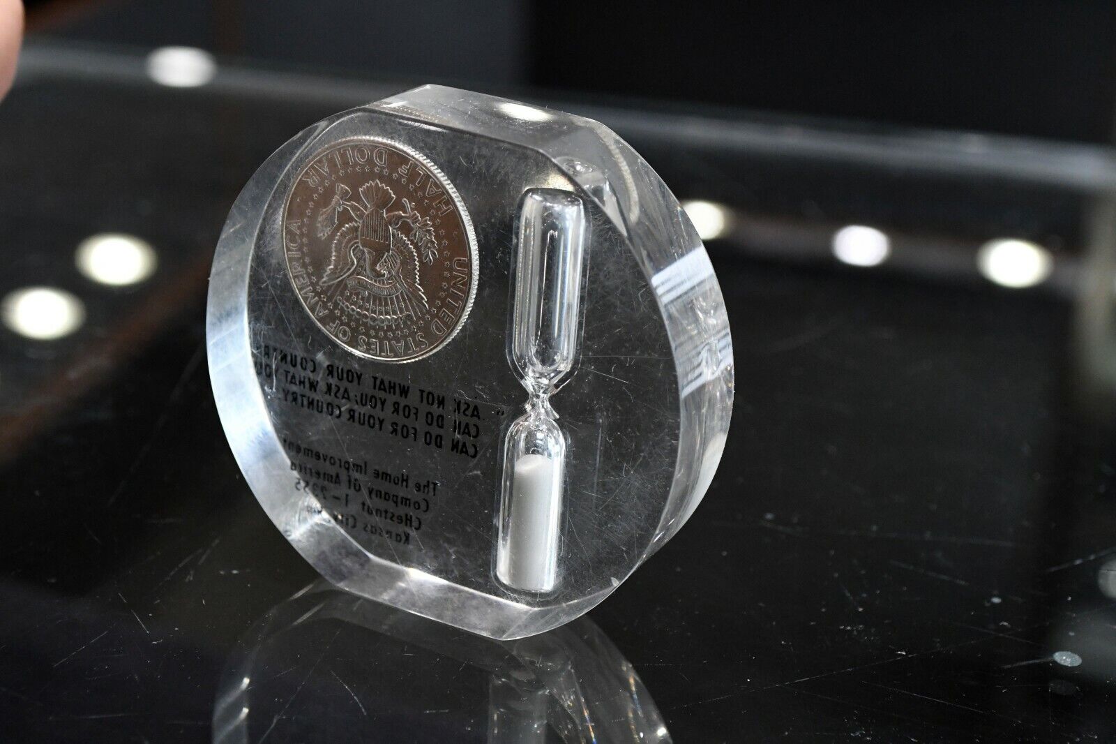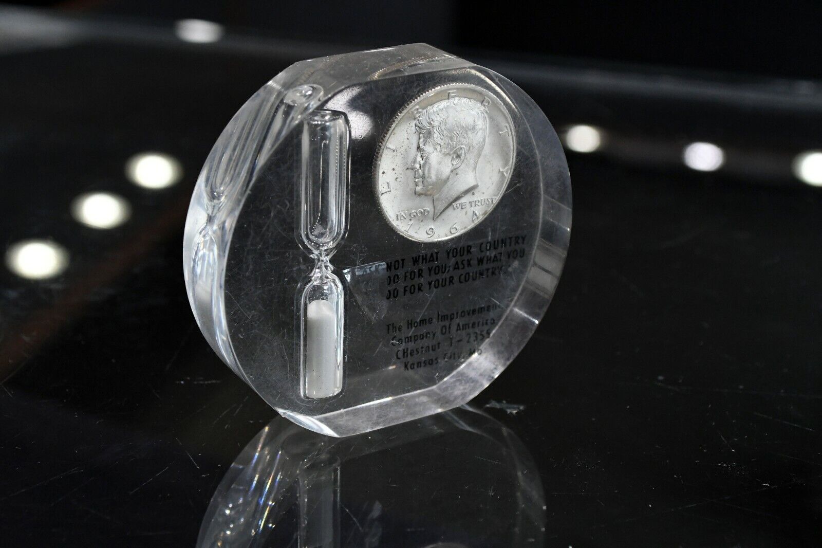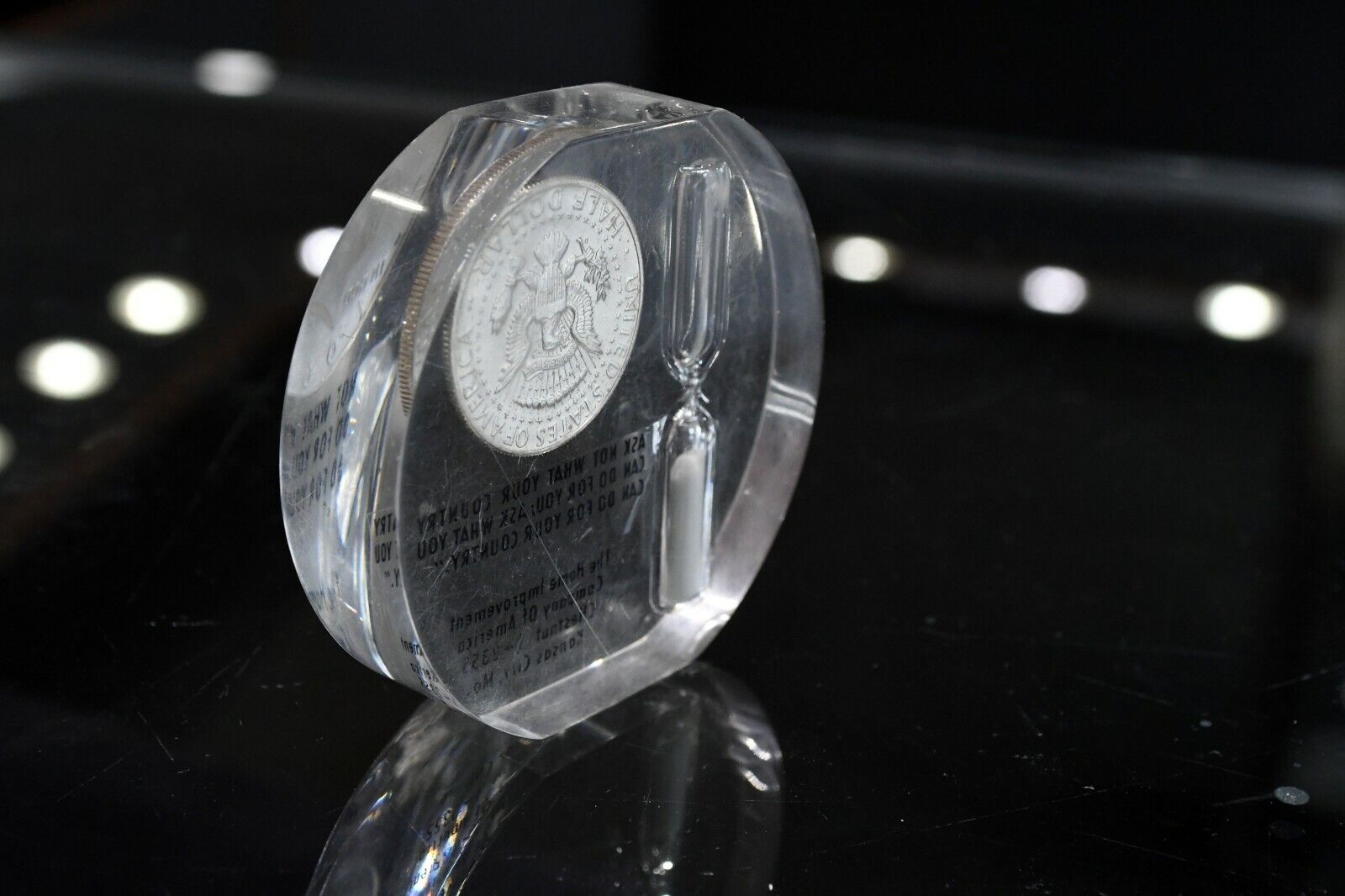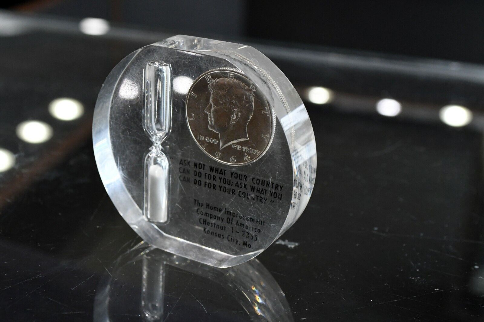 Vintage Paperweight Home Improvement Company KC Mo. Silver 1964 Kennedy Half