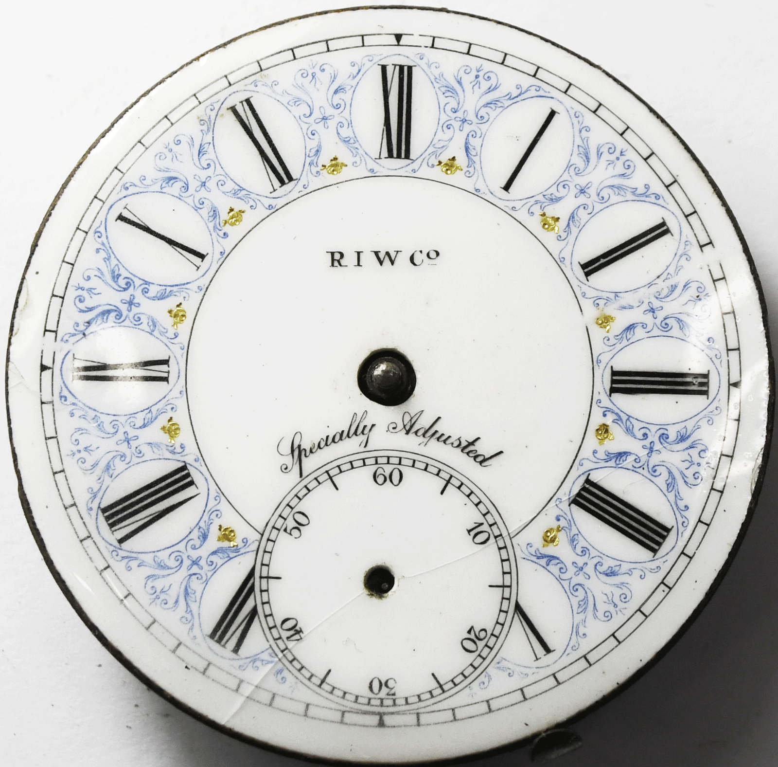 Vintage RIW Co Pocket Watch Movement Blue Enamel Swiss 45mm LS