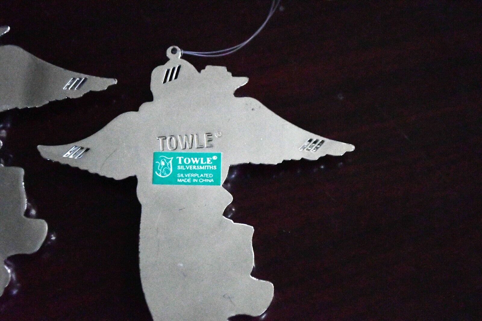 Vintage Set of 6 Towle Silver Plate Angels Playing Harps Christmas Ornaments