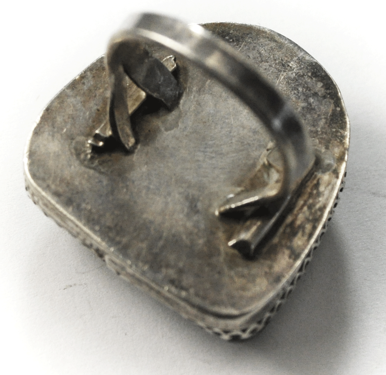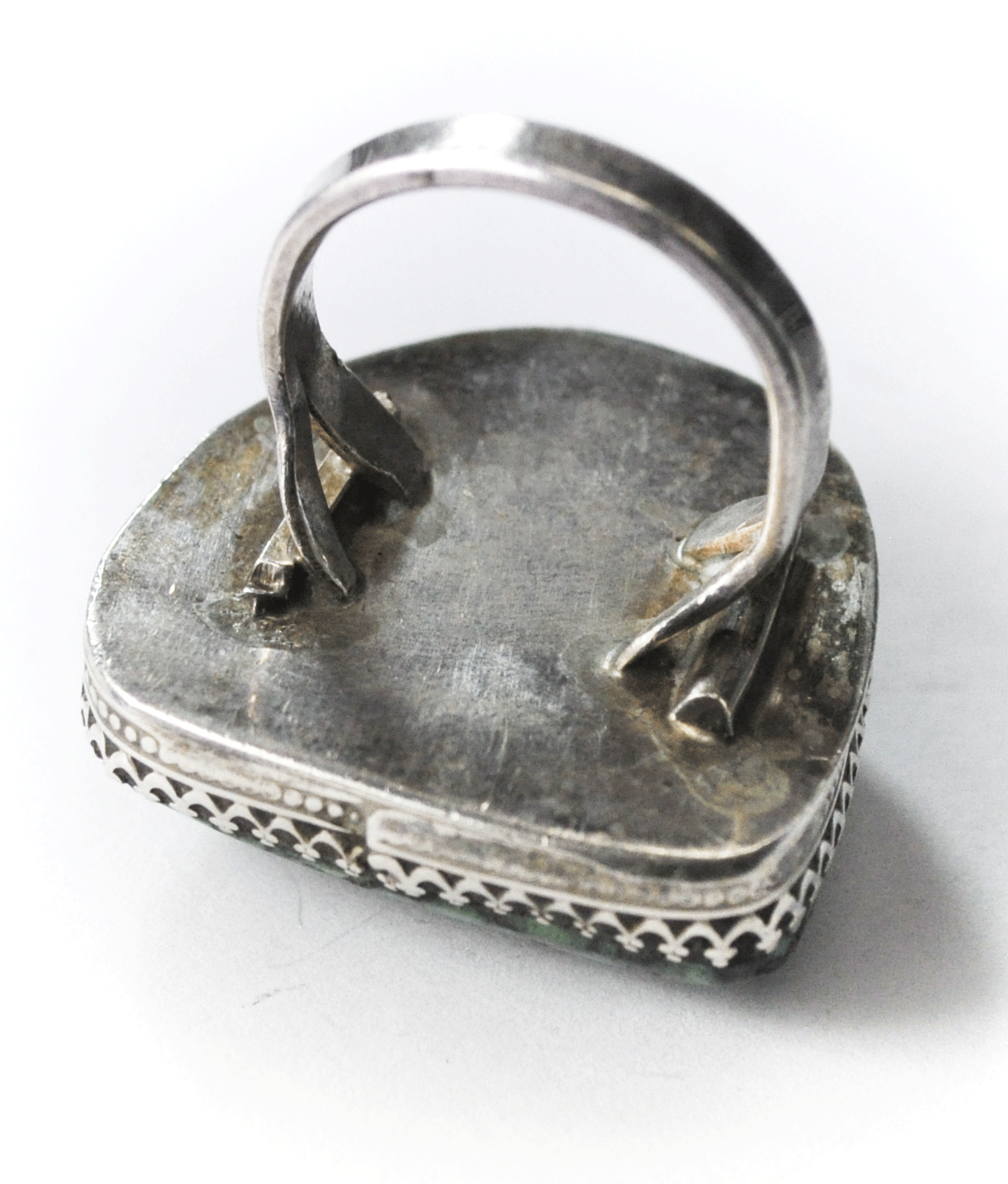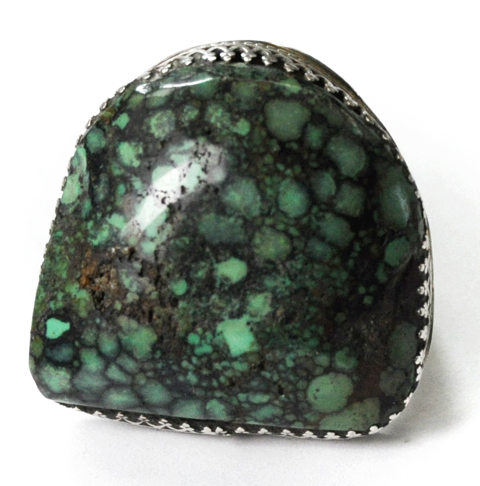 Vintage Sterling 33mm x 32mm Large Green Turquoise Ring Handcrafted Size 10