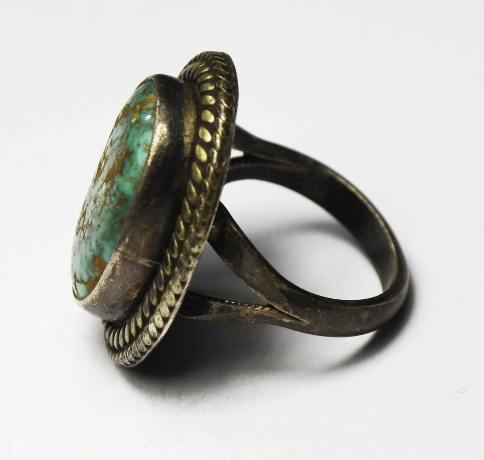 Vintage Sterling Oval Blue Green Turquoise Brown Matrix Ring 25mm Size 6.5
