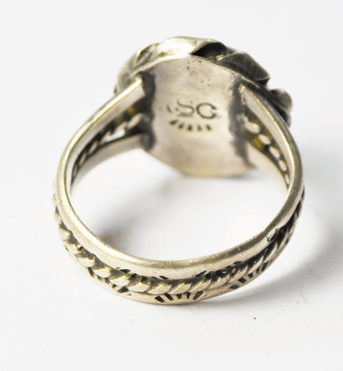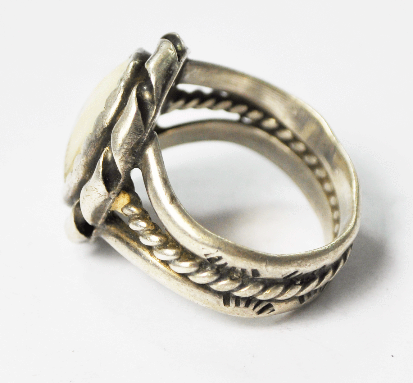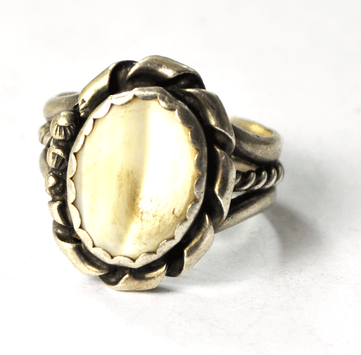 Vintage Sterling Oval MOP Mother of Pearl SG Tahe Style 3 Part Band 21mm Size 8