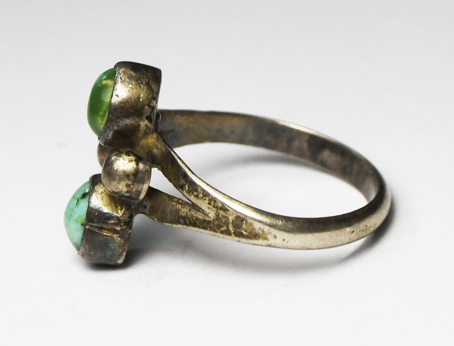 Vintage Sterling Silver Double Oval Turquoise Two Dot Ring 16mm Size 8.5