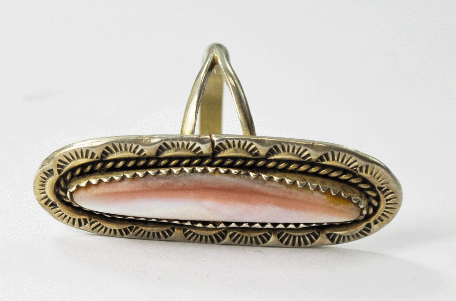 Vintage Sterling Silver Grace Smith Pink MOP 41mm Etched Rays Ring Size 7.25