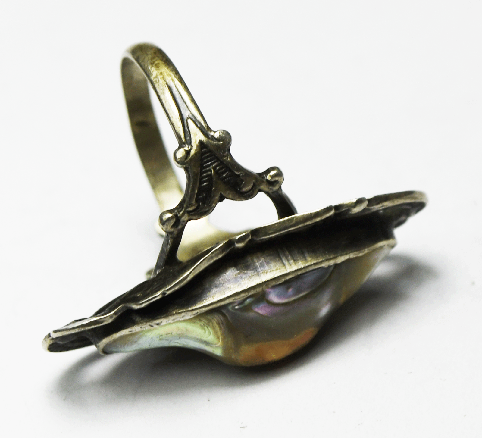 Vintage Sterling Silver MOP Abalone Wire Halo 28mm Ring Size 7-1/2