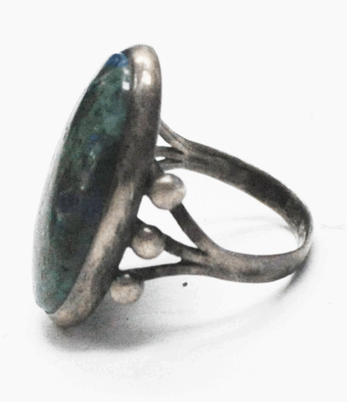 Vintage Sterling Silver Oval Chrysocolla Solitaire Ring 26mm Size 6