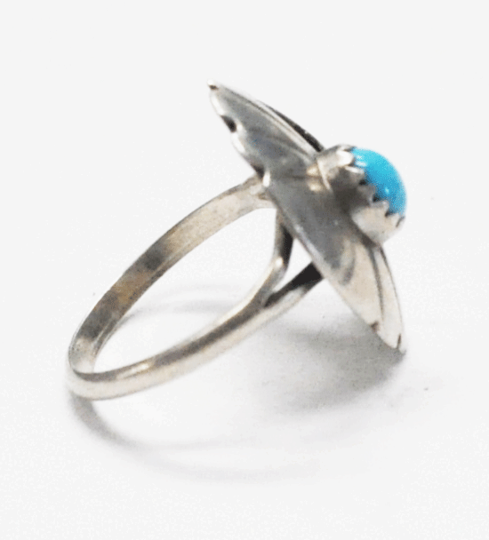 Vintage Sterling Silver Oval Turquoise Bird Cut Out Ring 21mm Size 6