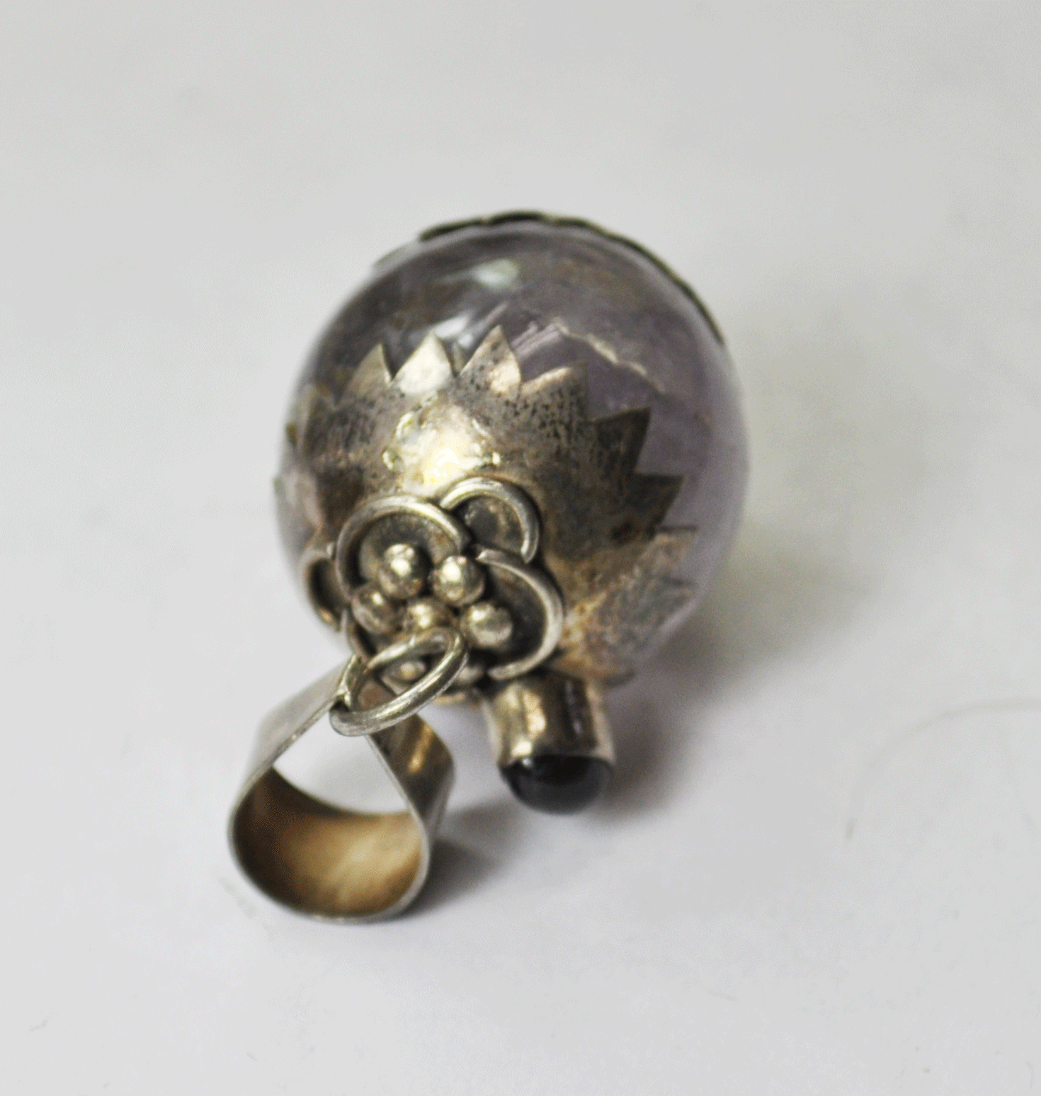 Vintage Sterling Silver Round Amethyst Ball Pendant 1.5" Large Bale Grape