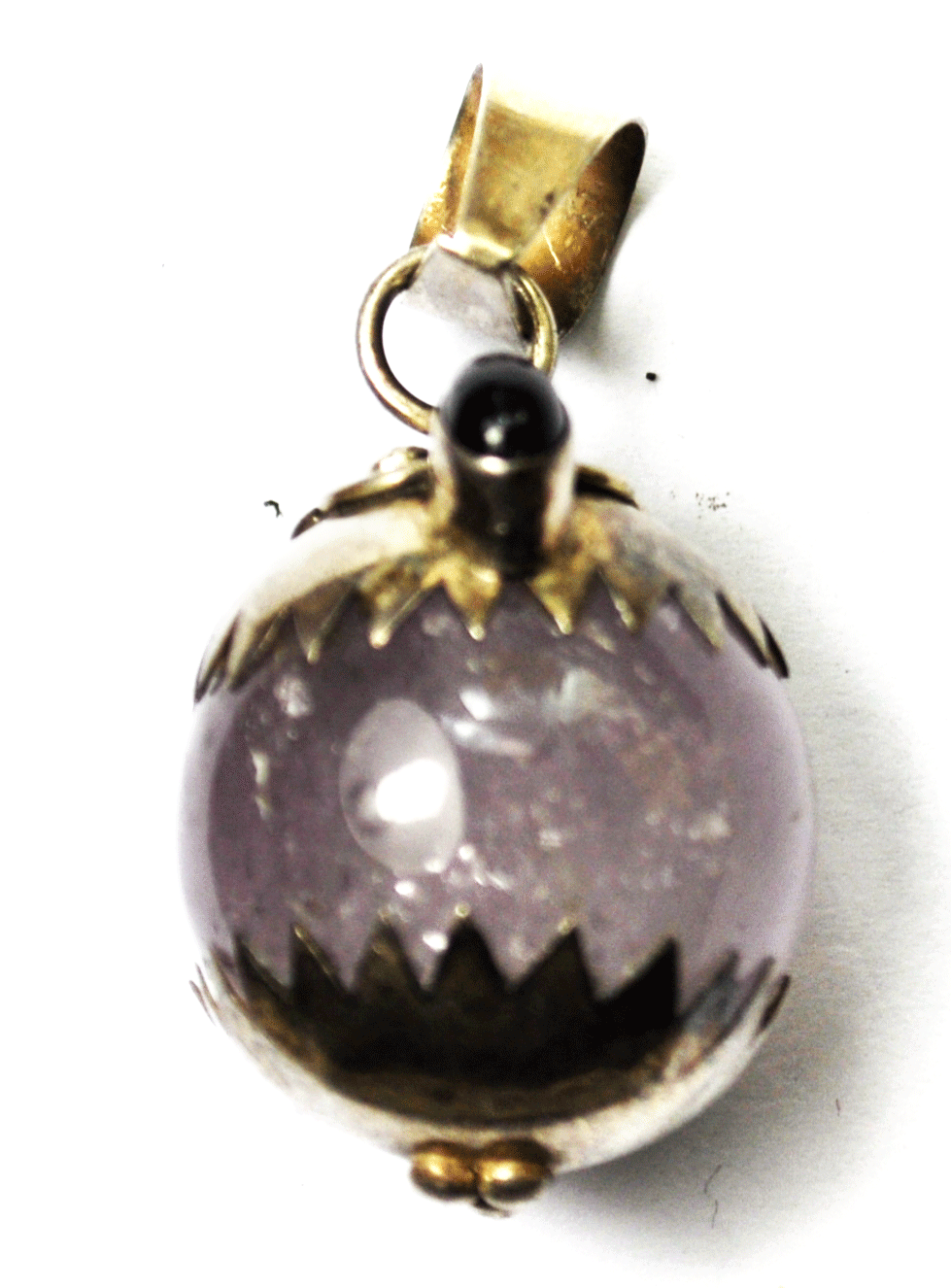 Vintage Sterling Silver Round Amethyst Ball Pendant 1.5" Large Bale Grape