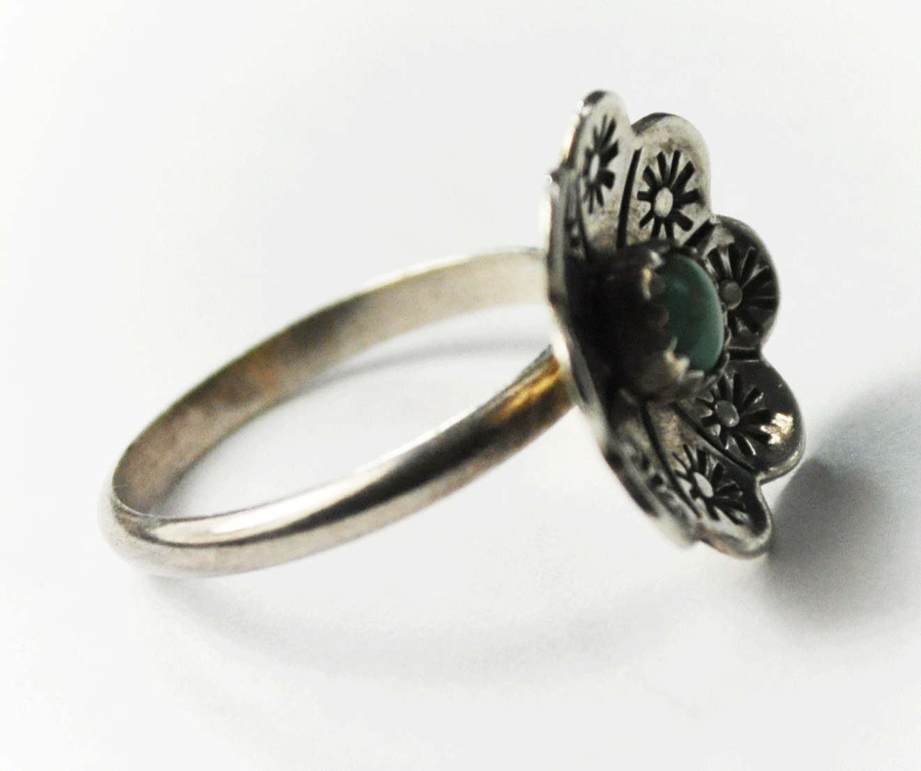 Vintage Sterling Silver Turquoise Flower Sun Pedal 14mm Ring Size 5-3/4