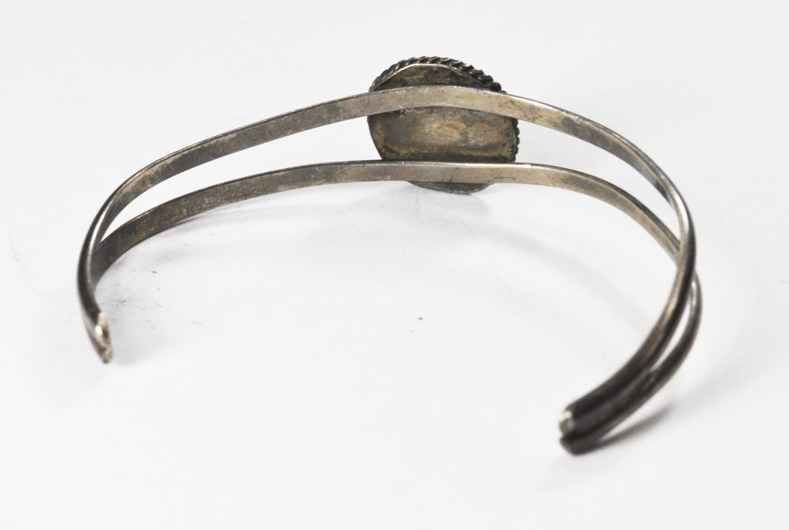 Vintage Sterling Silver Turquoise Split Cuff Bracelet 18mm 5.5"
