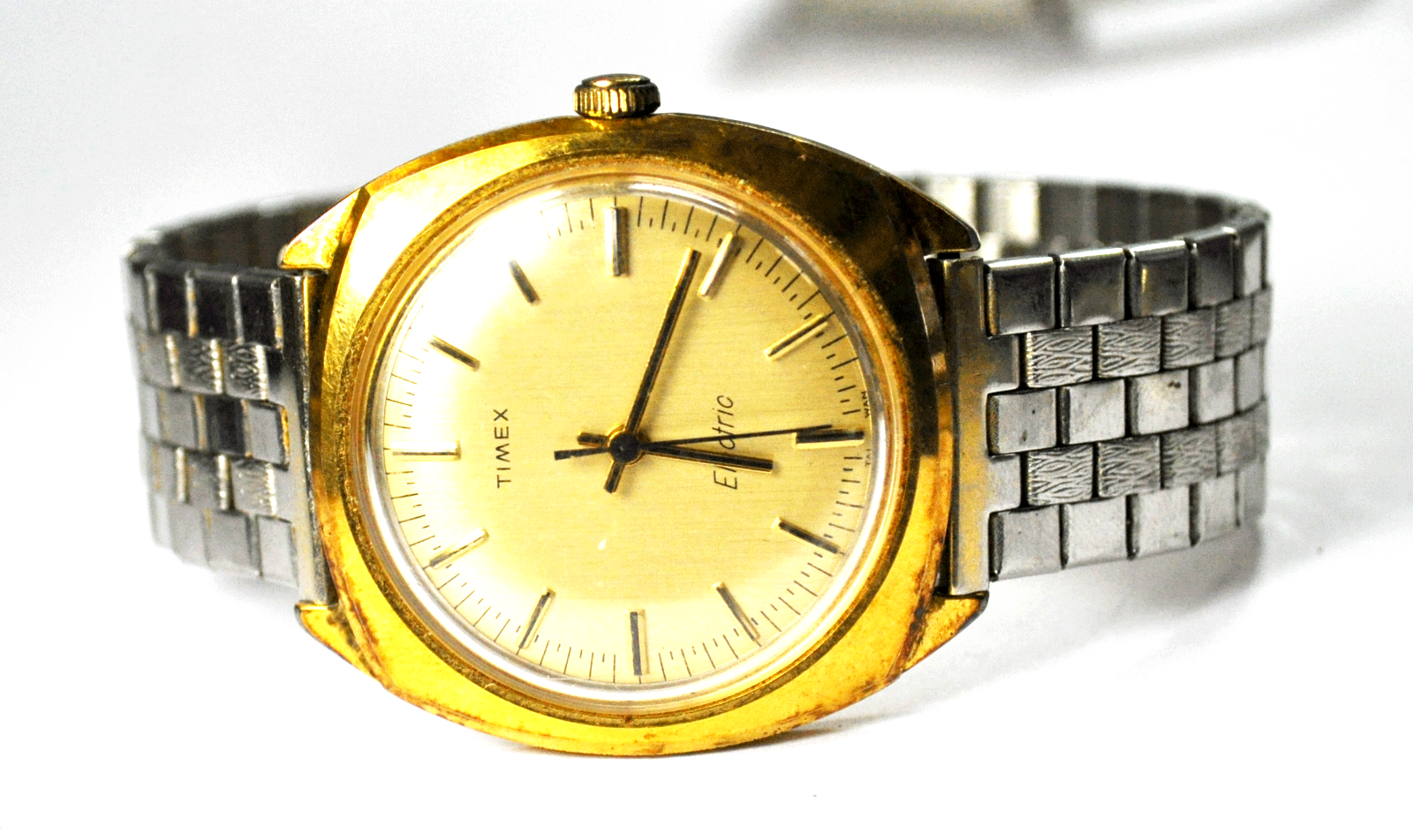 Vintage Timex Electric 809 36mm Wristwatch Runs Great Gold Tone Stick Dial