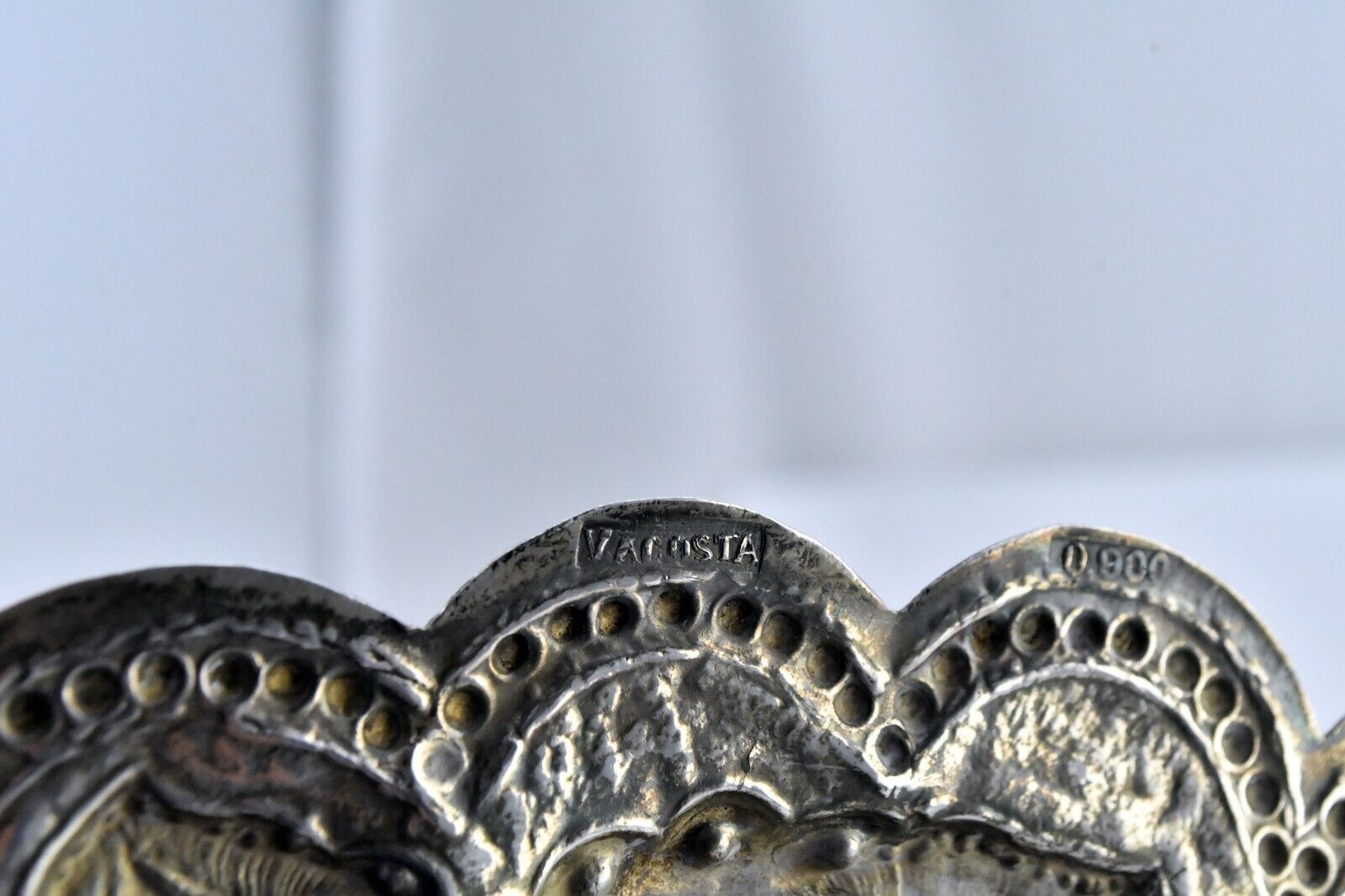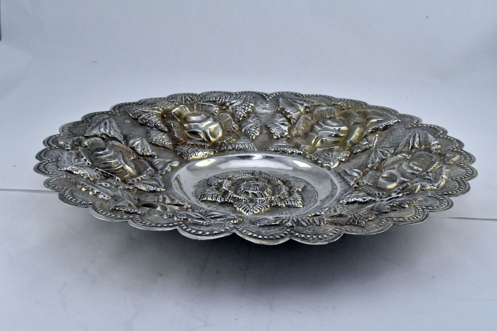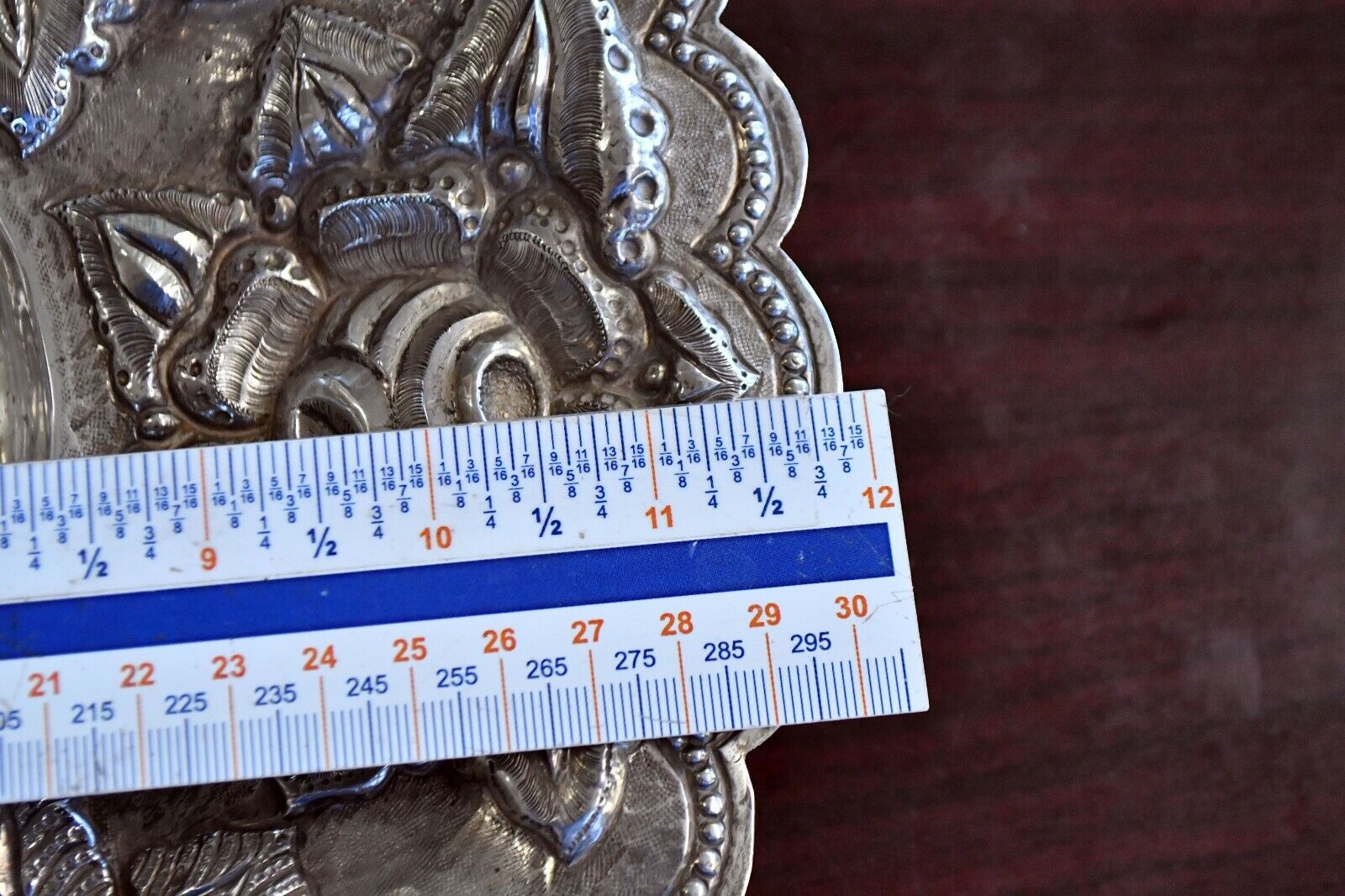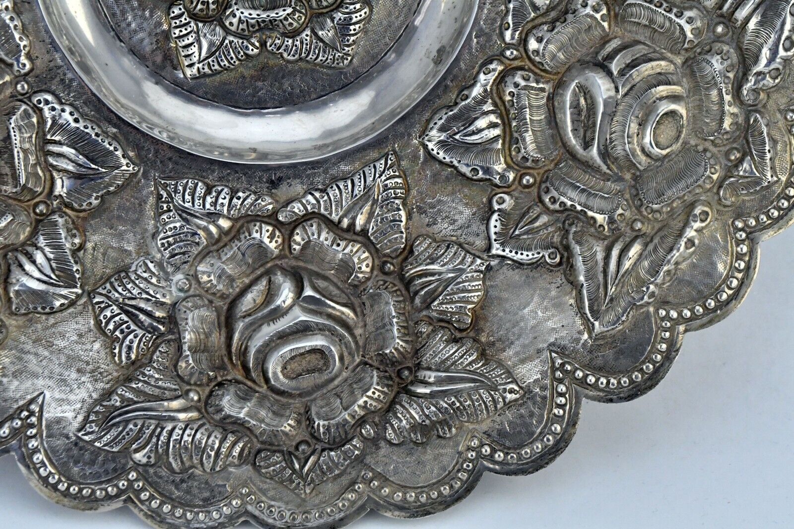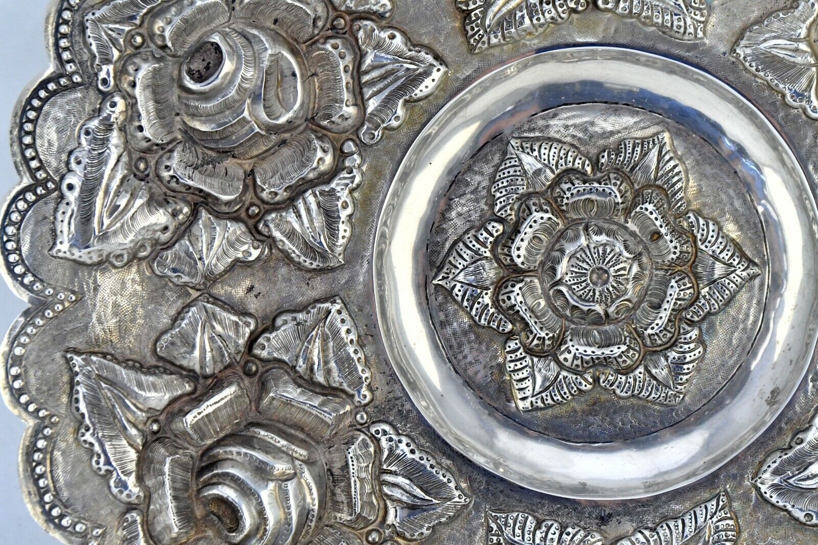 Vintage V. Acosta Signed .900 Fine Silver Mexico Tray 12" Rose Pattern 13.2oz.