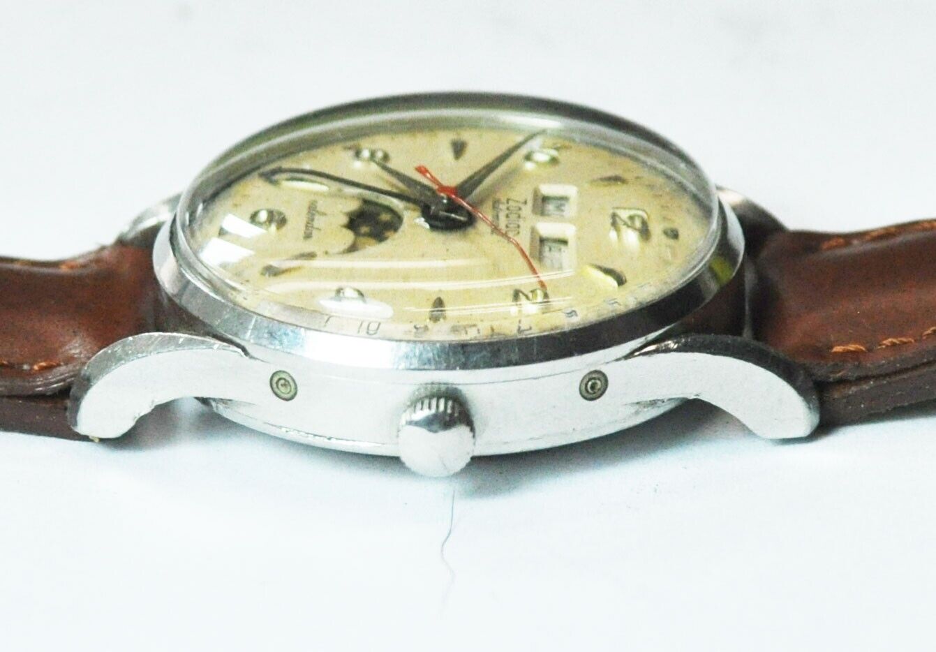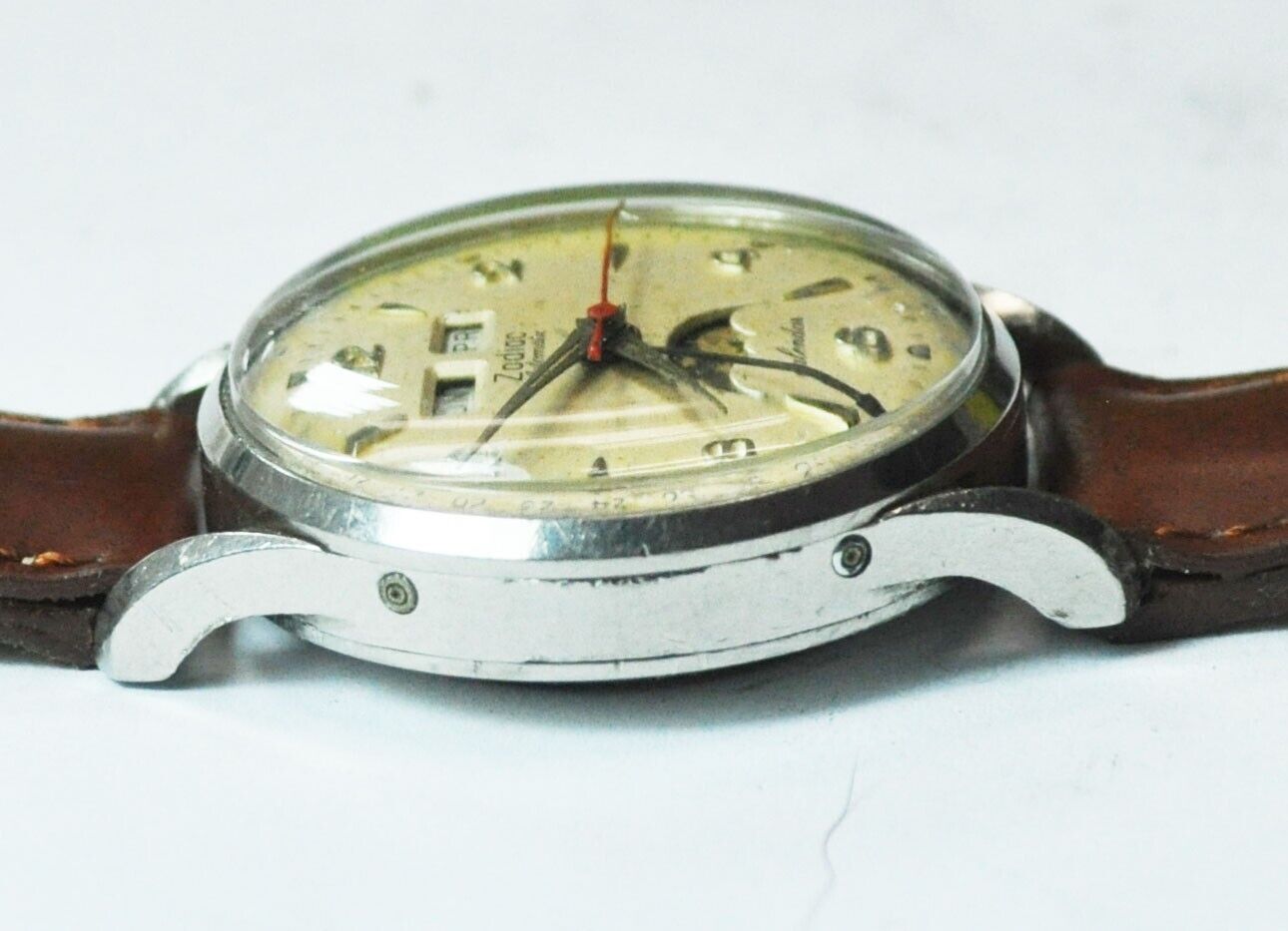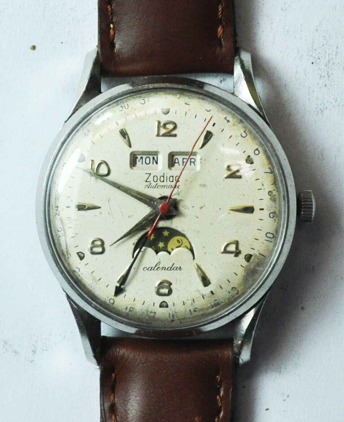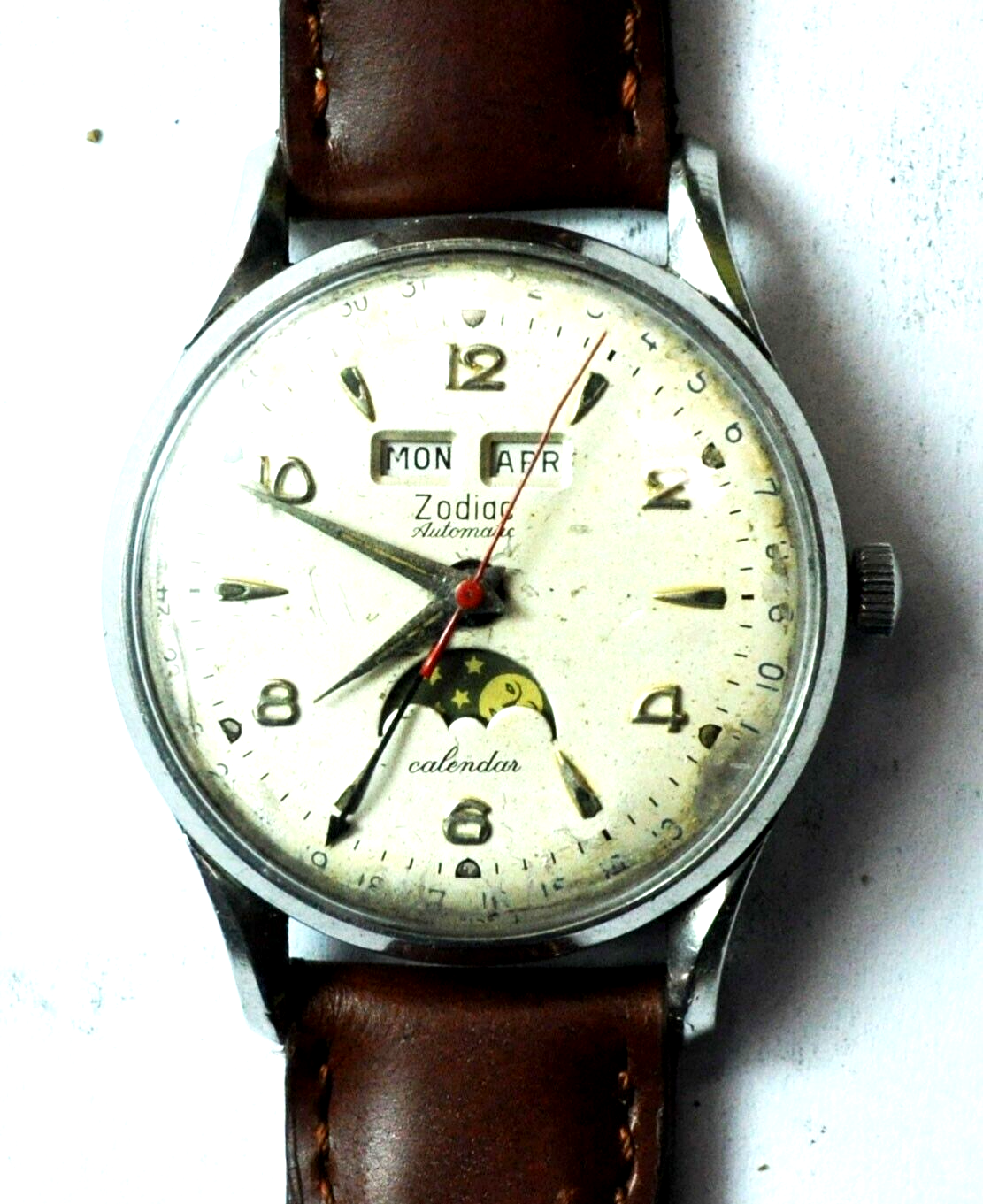 Vintage Zodiac Moonphase Automatic Triple Calendar Wristwatch 1402 34mm S/S