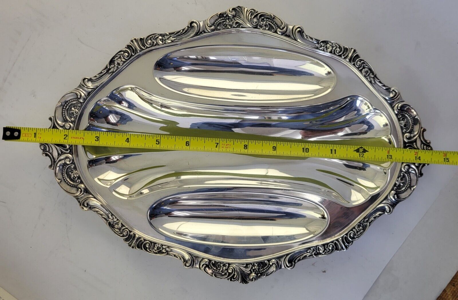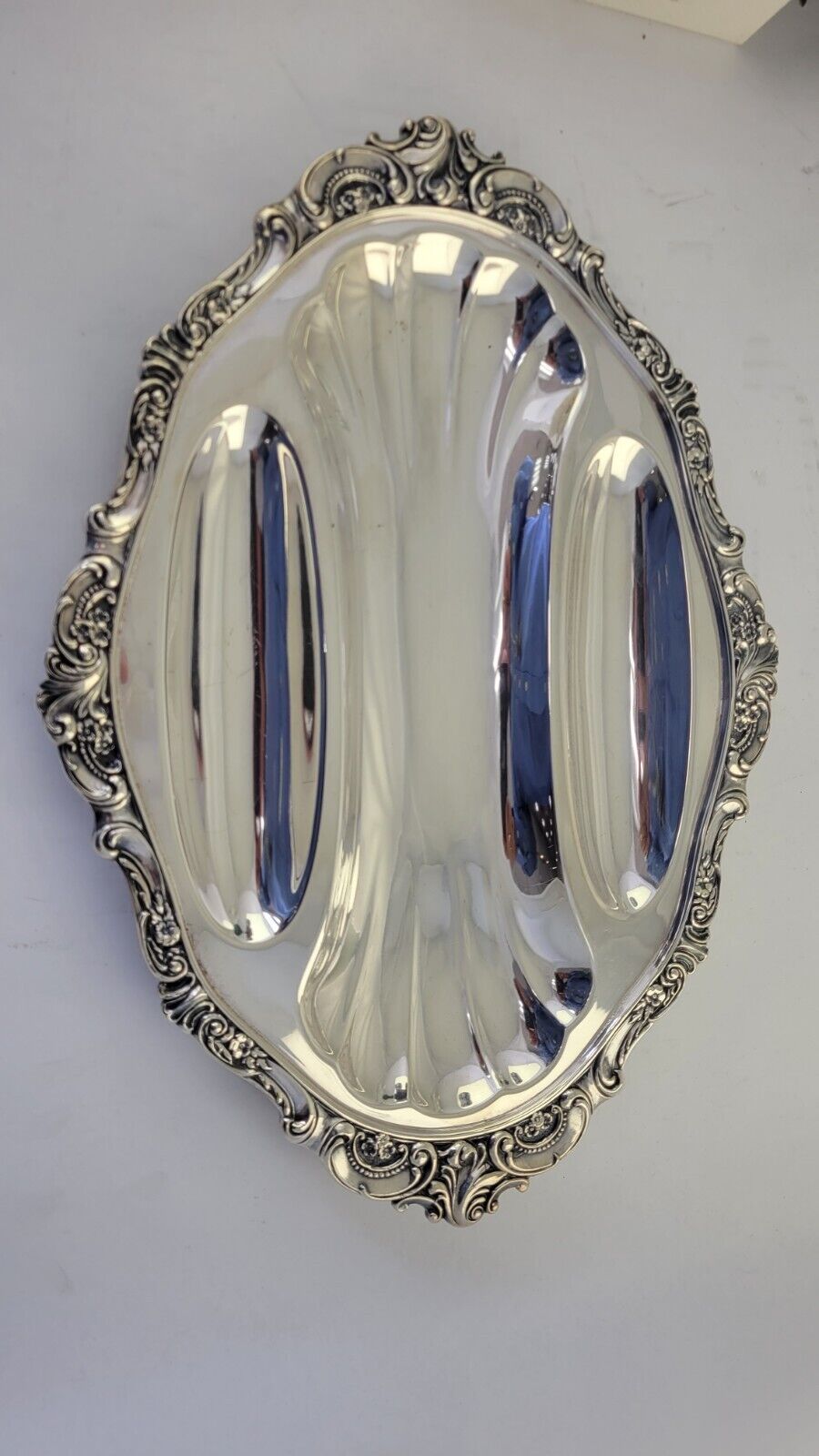 Wallace Baroque Silverplate 13 5/8" x 9-5/8" Relish Tray 3 Compartments Divided!
