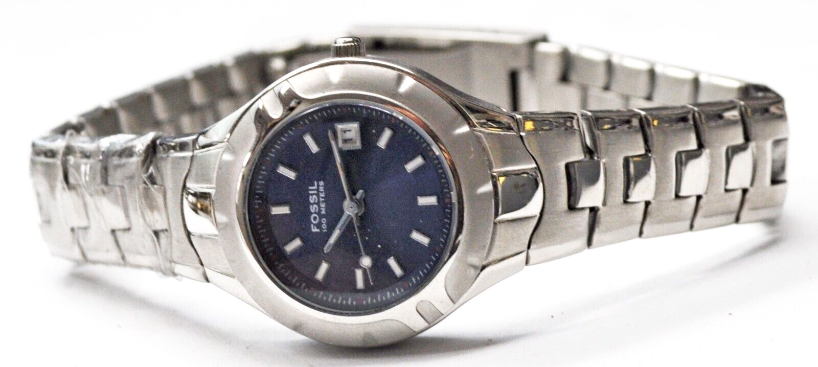 Women's Fossil Blue Dial PR1690 29mm Stainless Quartz Date 7-1/2" Wrist