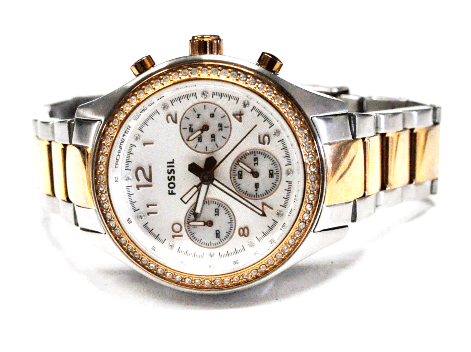 Women's Fossil Quartz CH2797 Rose Gold Tone Crystal Bezel Wristwatch 38mm