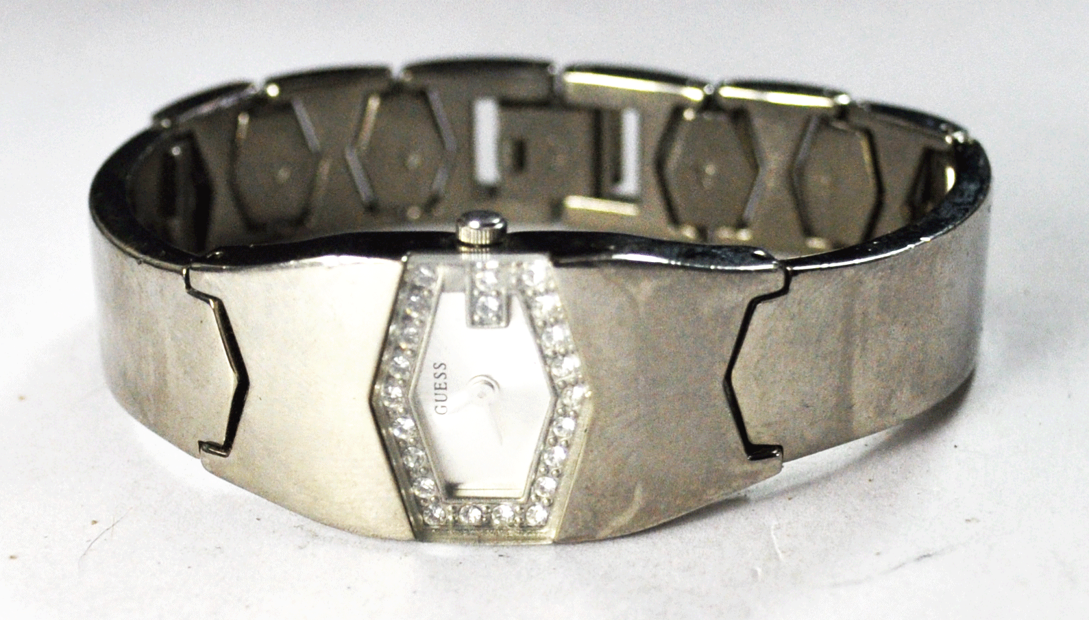 Women's Guess Quartz Silver Dial Crystal Bezel G75528L Wristwatch 18mm