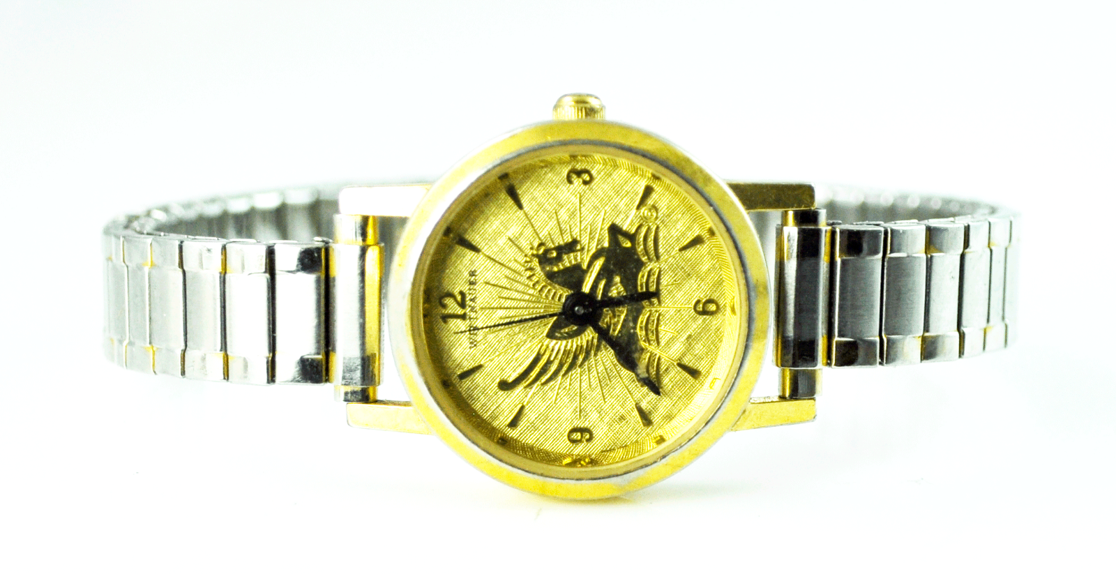 Women's Wittnauer 24mm Gold Tone Pegasus Gold Dial Quartz Wristwatch Stretch Ban