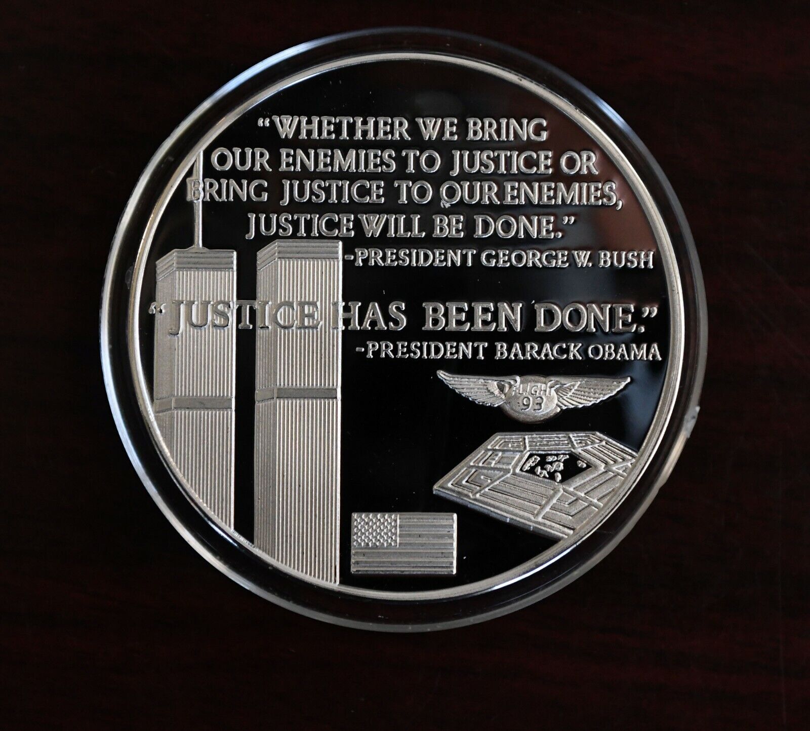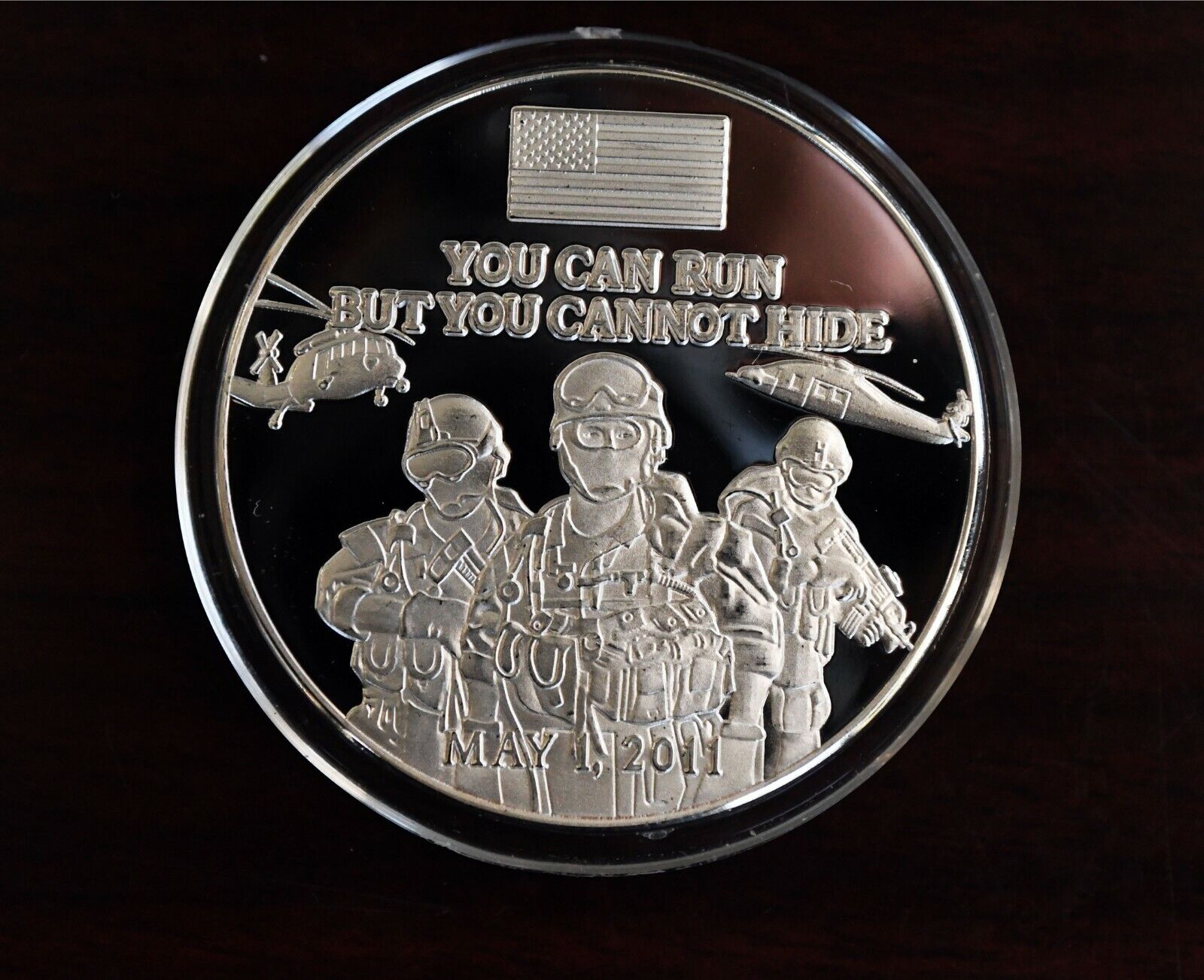 You can run but you cant hide Justice has been done 9/11 Challenge Plated Coin